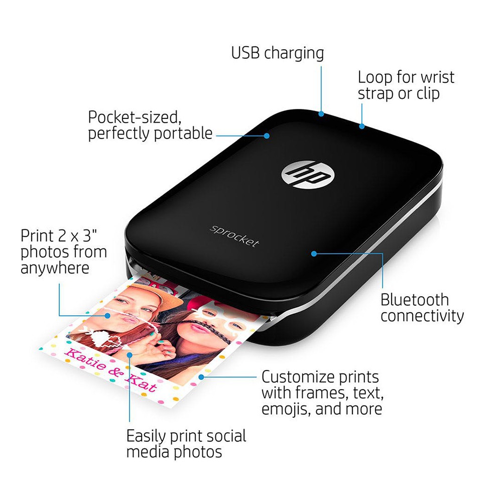 HP Sprocket Mini Photo Printer Instantly [FREE HP ZINK Paper 20Pack] - Black Z3Z92ABK