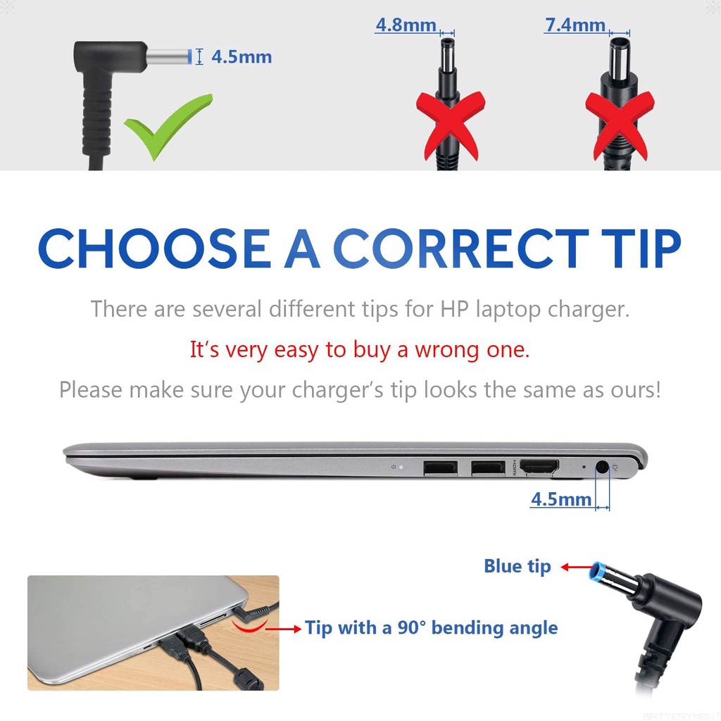 HP Stream Folio Pavillion Laptop Adapter Charger 19.5V 2.31A 3.33A 4.62A 45W 65W 90W (4.5*3.0) Replacement