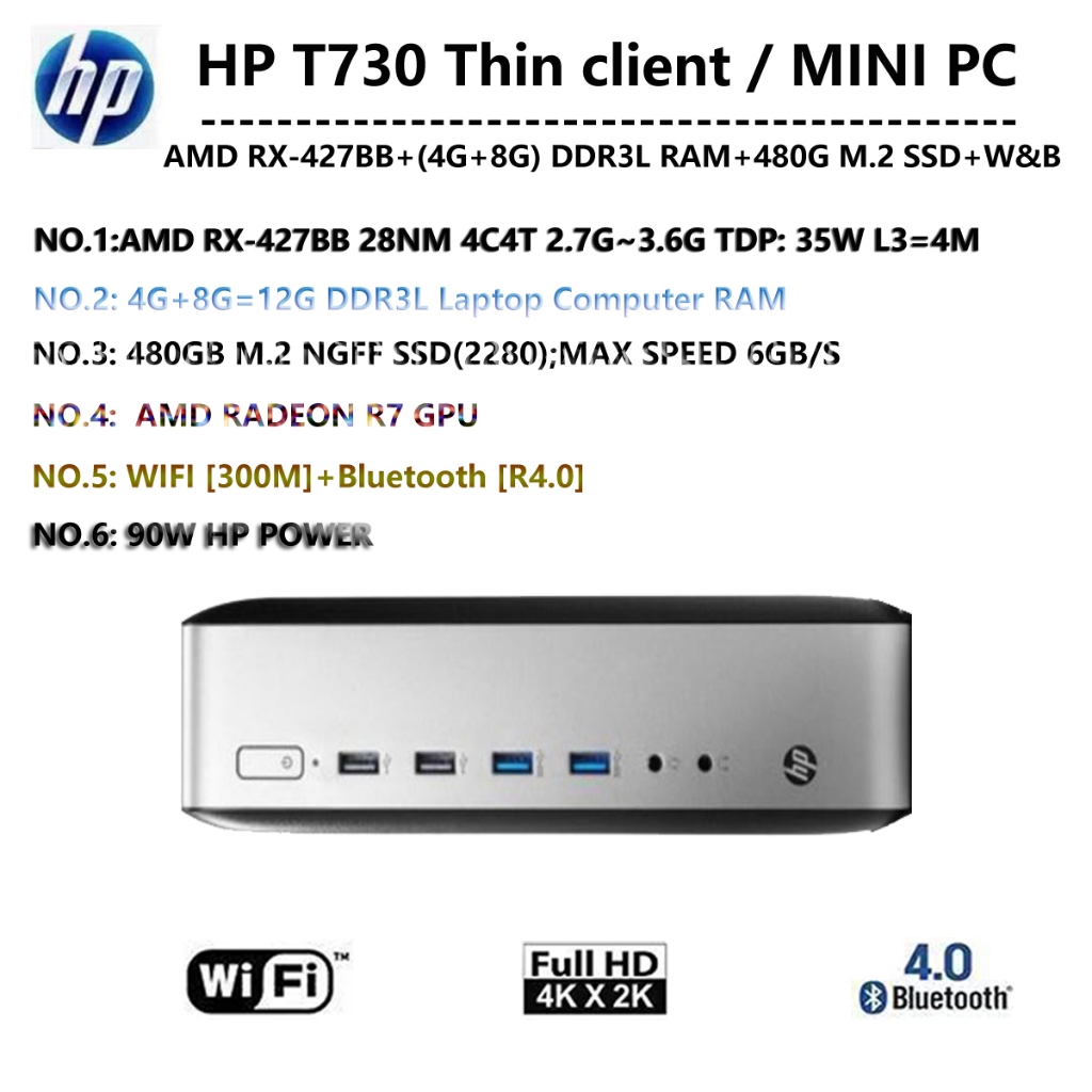 HP T730 Thin Client (AMD RX-427BB+2X4G DDR3L RAM+256G M.2 NGFF SSD) Mini PC