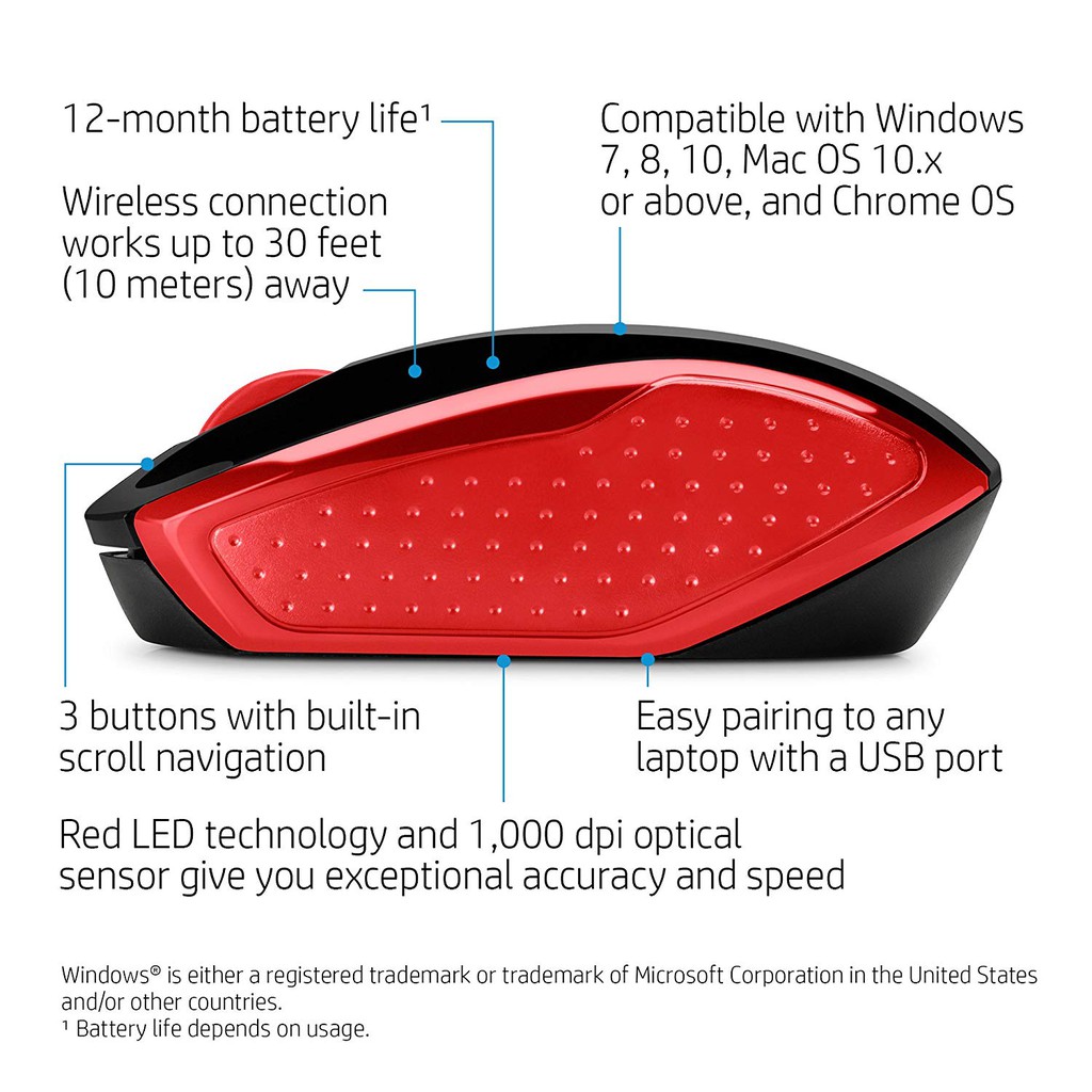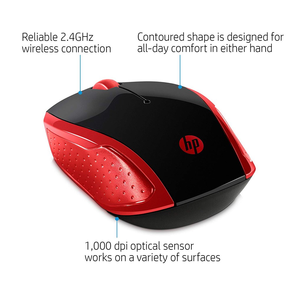 HP Wireless Mouse 200 High DPI, Precision Sensor, USB Nano receiver, Range up to 10 meter - (Red / Blue / Black)