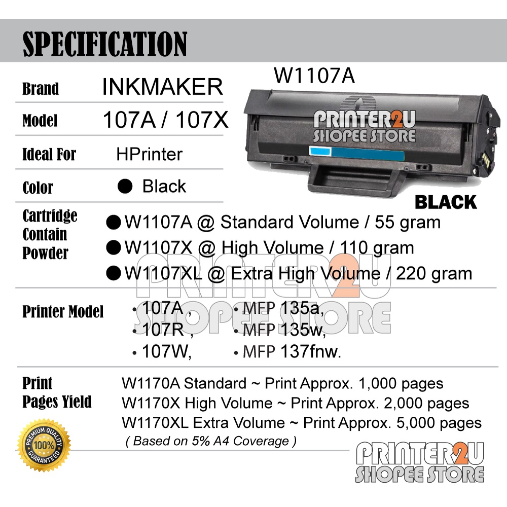 H*107A Cartridge Compatible to H* W1107A 107A H*-107A 107W MFP 135a 135w 137fnw Black Laser Printer Toner INK
