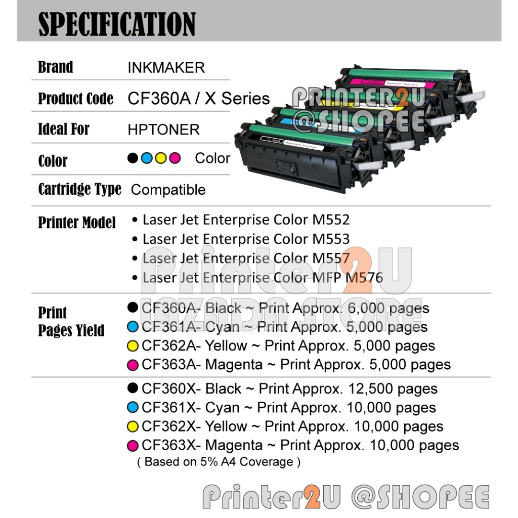 H*508A Compatible to H* 508A CF360A Color LaserJet Enterprise Color M552 M553 M557 MFP M576 Laser Toner ink