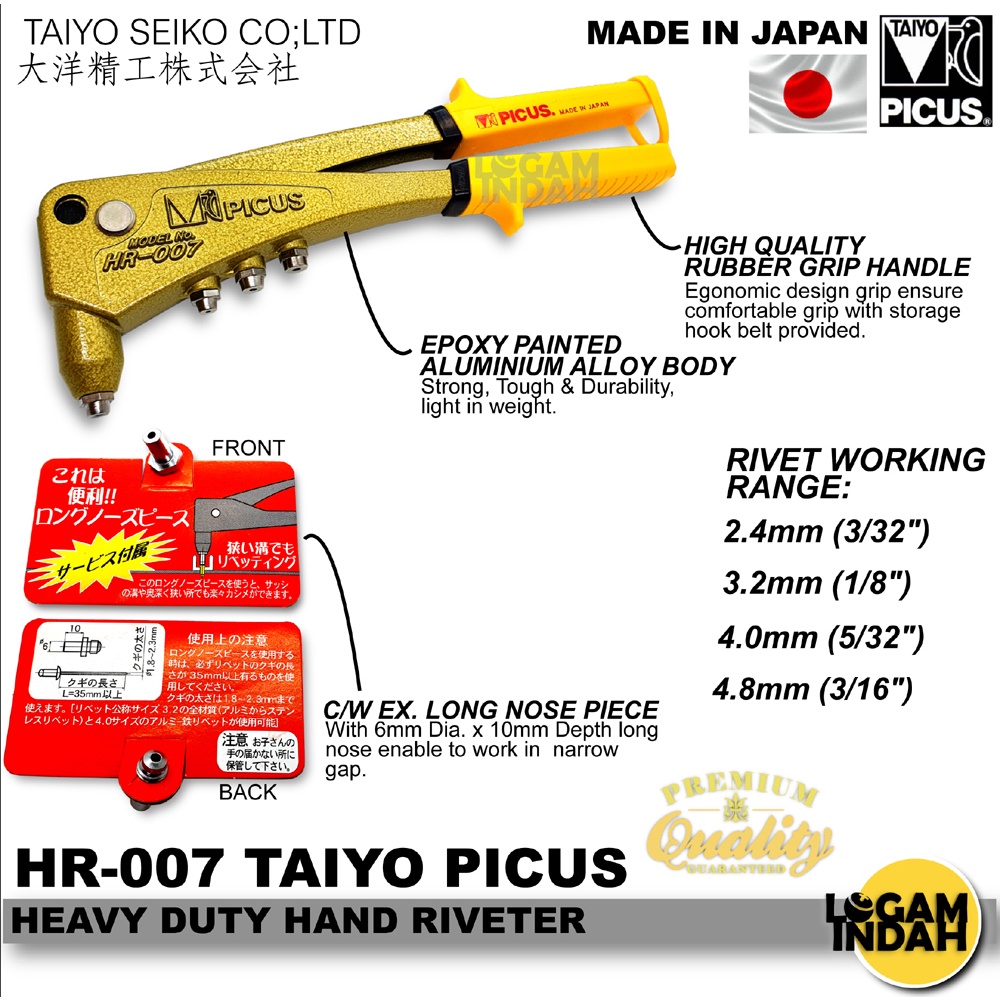 HR-007 TAIYO PICUS HEAVY DUTY HAND RIVERTER / RIVET GUN { MADE IN JAPAN }