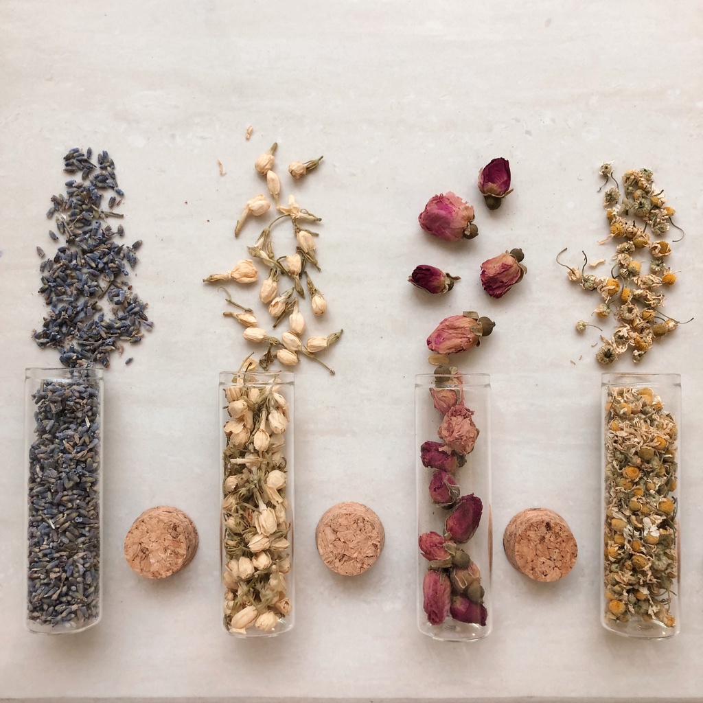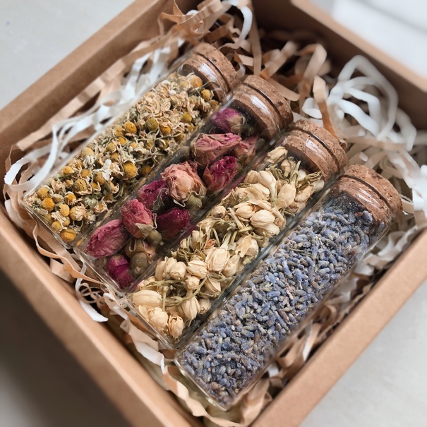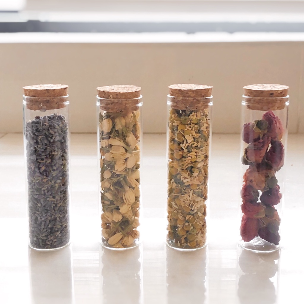HR Gift Box Set Flower Tea Starter Pack (Chamomile Rose Jasmine Lavender) Glass Test Tubes