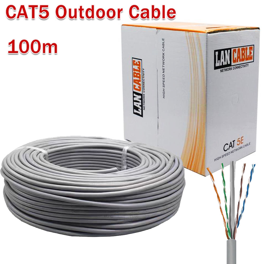 HS silver gray CAT5 Outdoor/ Indoor UTP High Speed Ethernet Lan Cable Waterproof CCA 50M/100M/305M