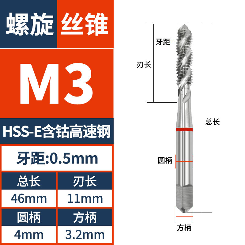 HSSE Standard Coarse/ Fine Thread Tap Spiral Tap M2 M2.5 M3 M4 M5 M6 M7 M8 M9 M10 M11 M12 Metric Machine Screw Thread Taps Tip Tap Special for Stainless Steel/Carbon Steel