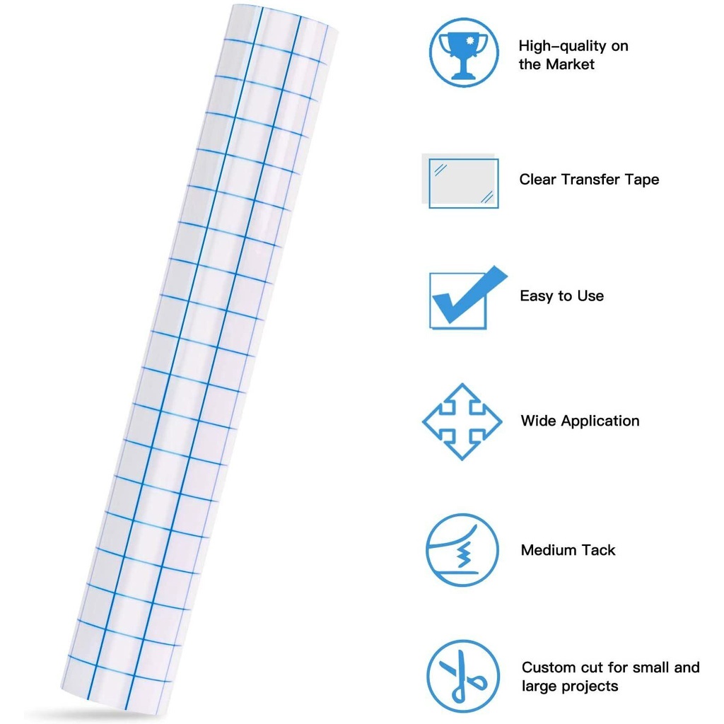 HTVRONT 12"x5FT/30x150cm Transfer Tape for Self Adhesive Permanent Vinyl Roll Alignment Grid Rolls Cameo Transfer Paper Rruler for Vinyl for Decals Signs Cup Floor Windows Stickers