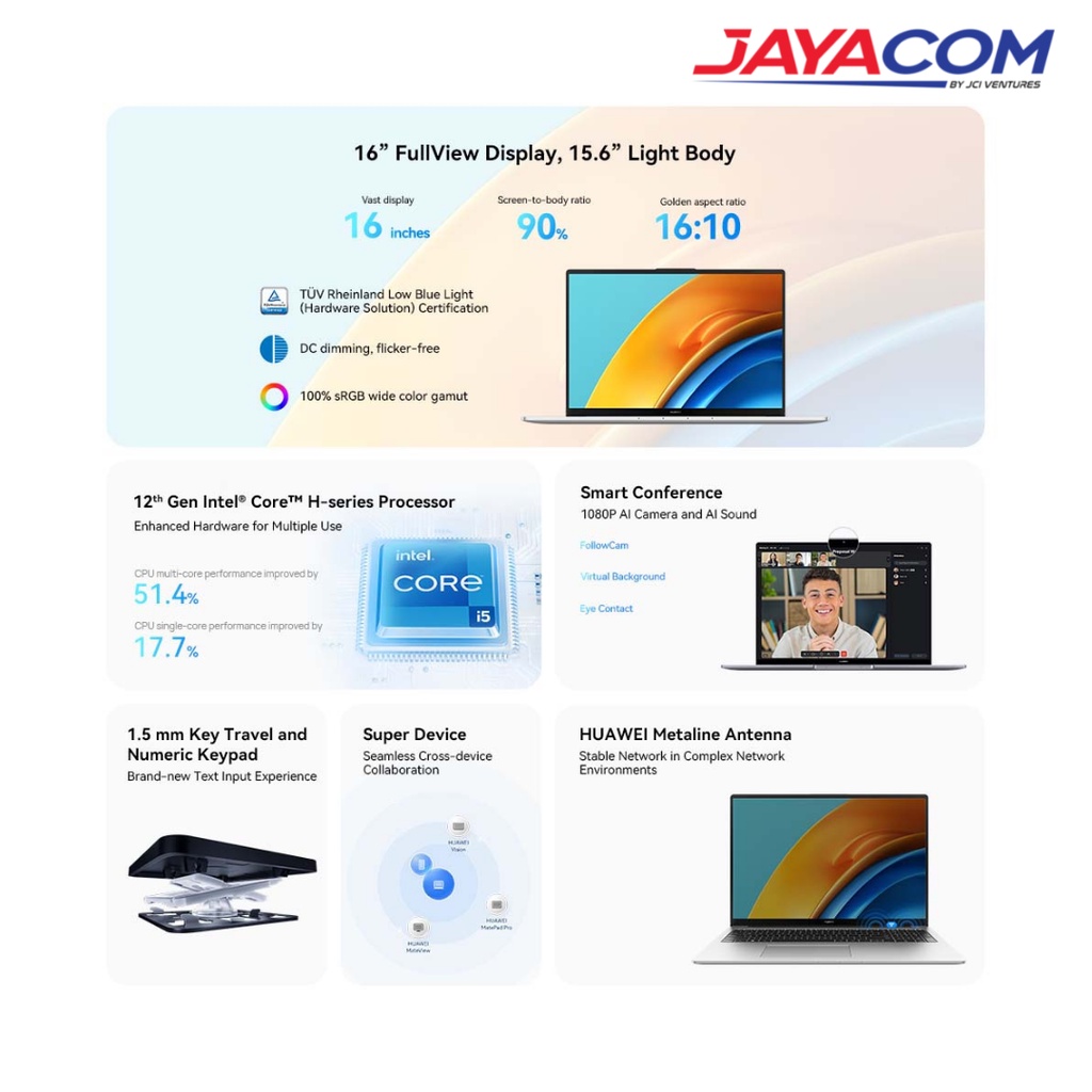 HUAWEI MateBook D16 Notebook | 12th Gen Intel Core i5-12450H Processor (8GB + 512GB / 16GB + 512GB)