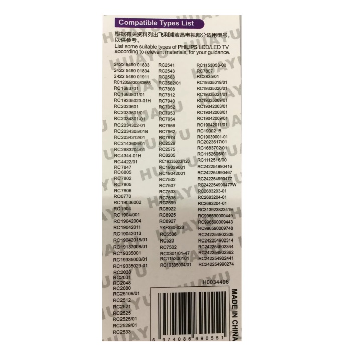 HUAYU LCD/LED TV Remote Control Replacement For PHILIPS (RM-D1000)