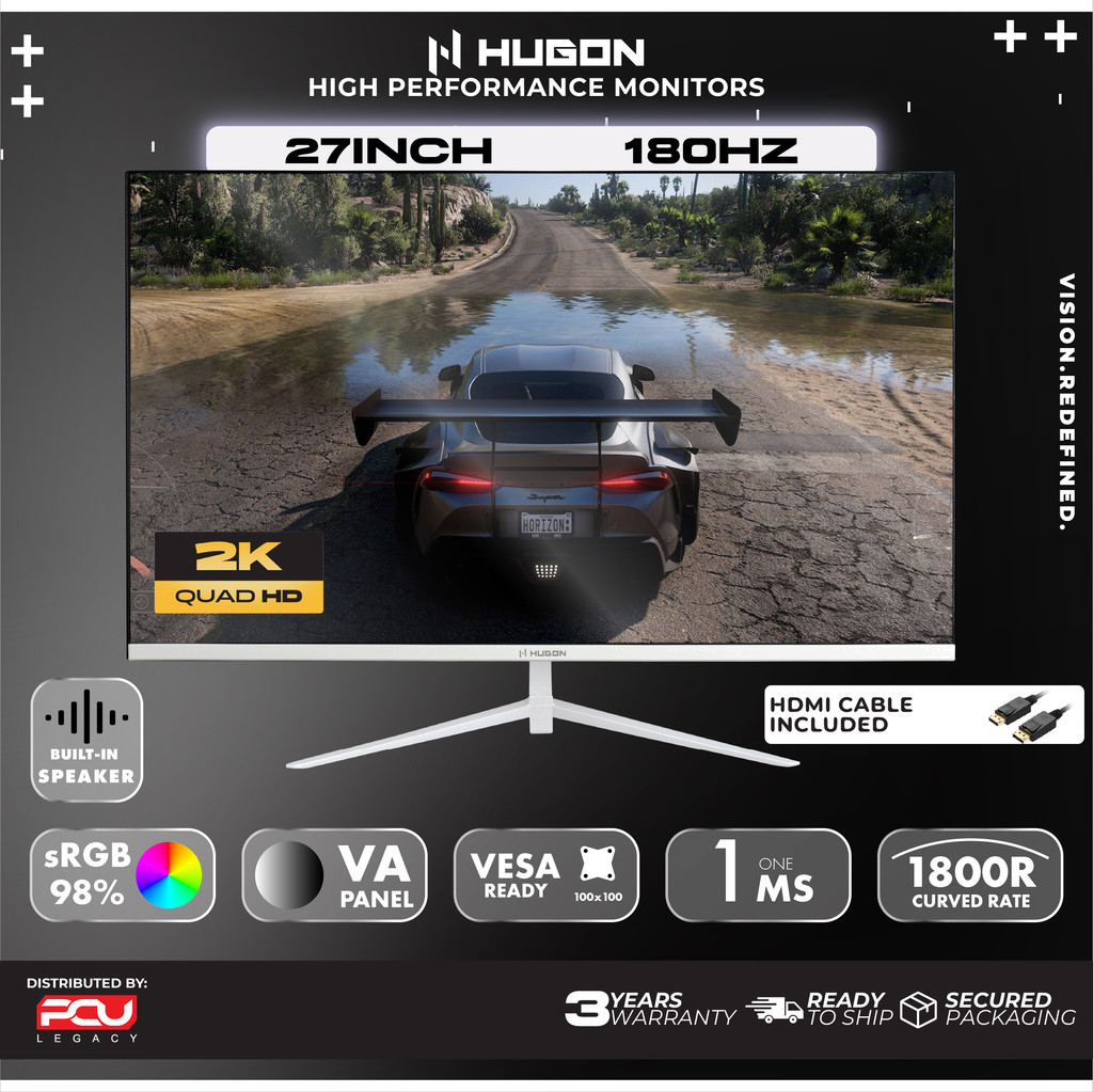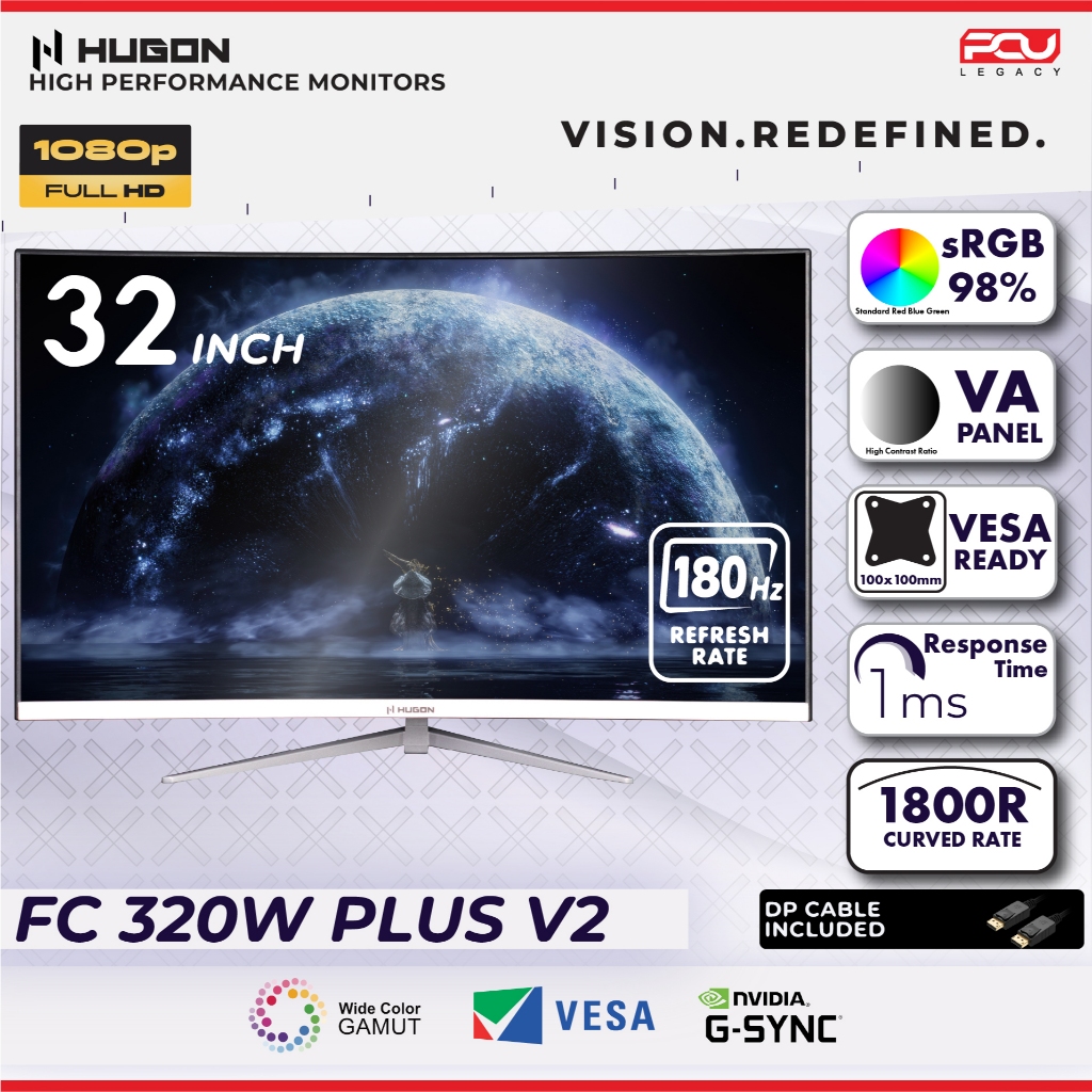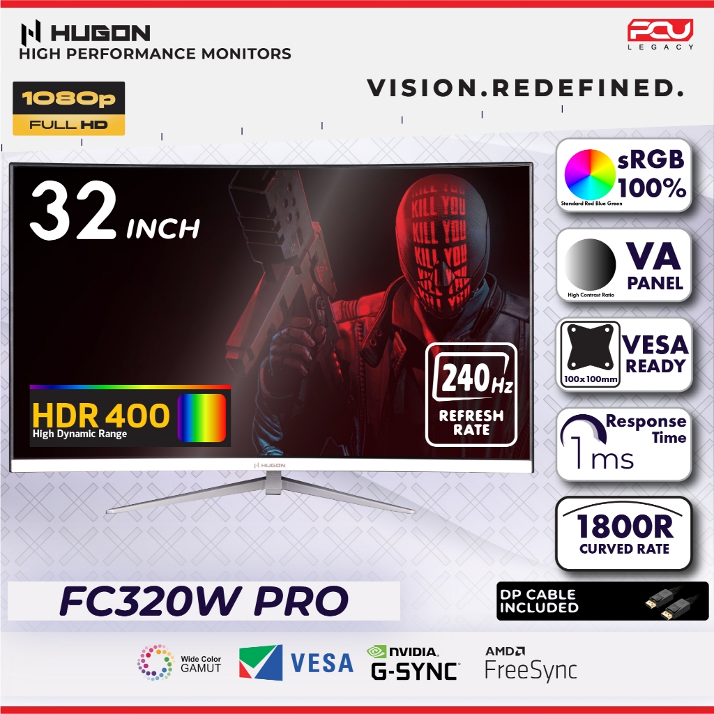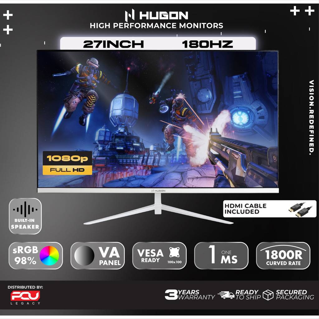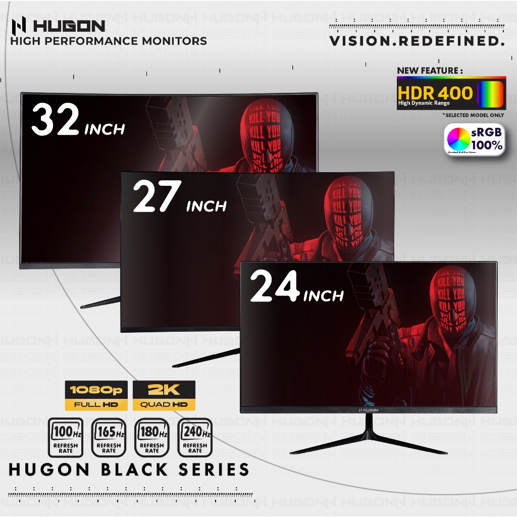 HUGON 24” 27" 32” CURVED 120Hz 180Hz 240Hz FHD 1080P QHD 2K UHD 4K HIGH PERFORMANCE GAMING COMPUTER MONITOR
