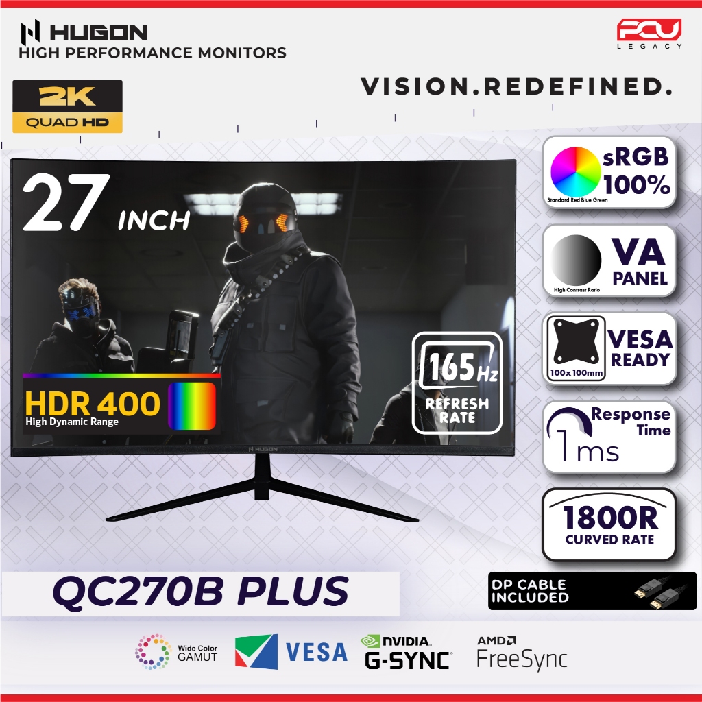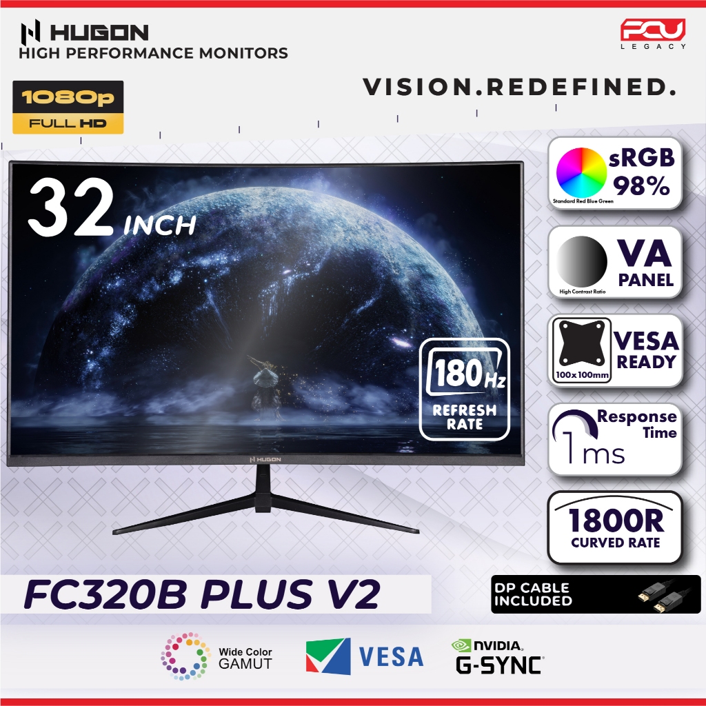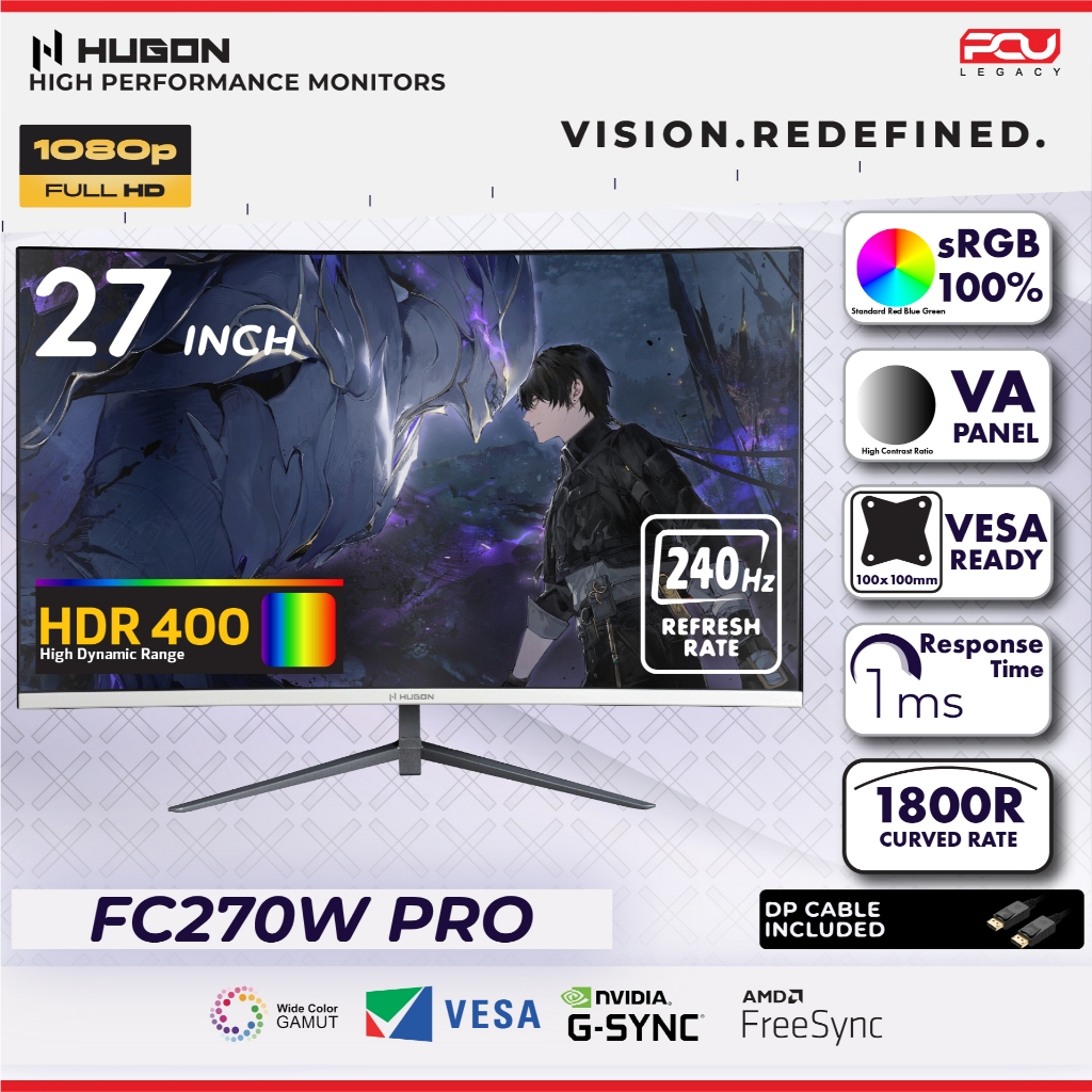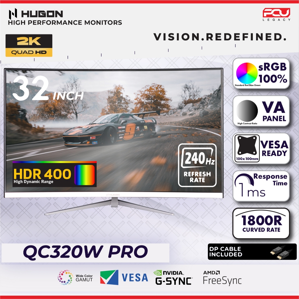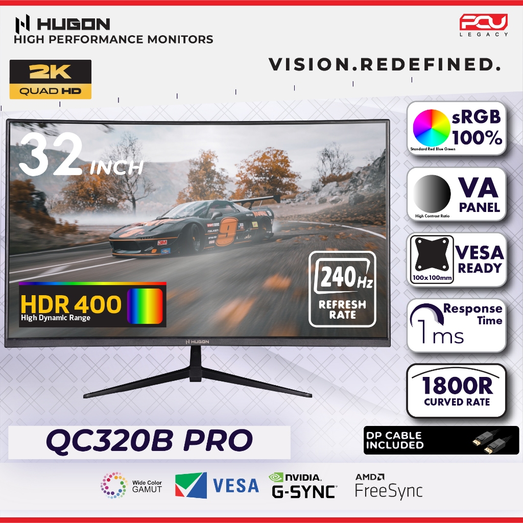HUGON 24” 27" 32” CURVED 120Hz 180Hz 240Hz FHD 1080P QHD 2K UHD 4K HIGH PERFORMANCE GAMING COMPUTER MONITOR
