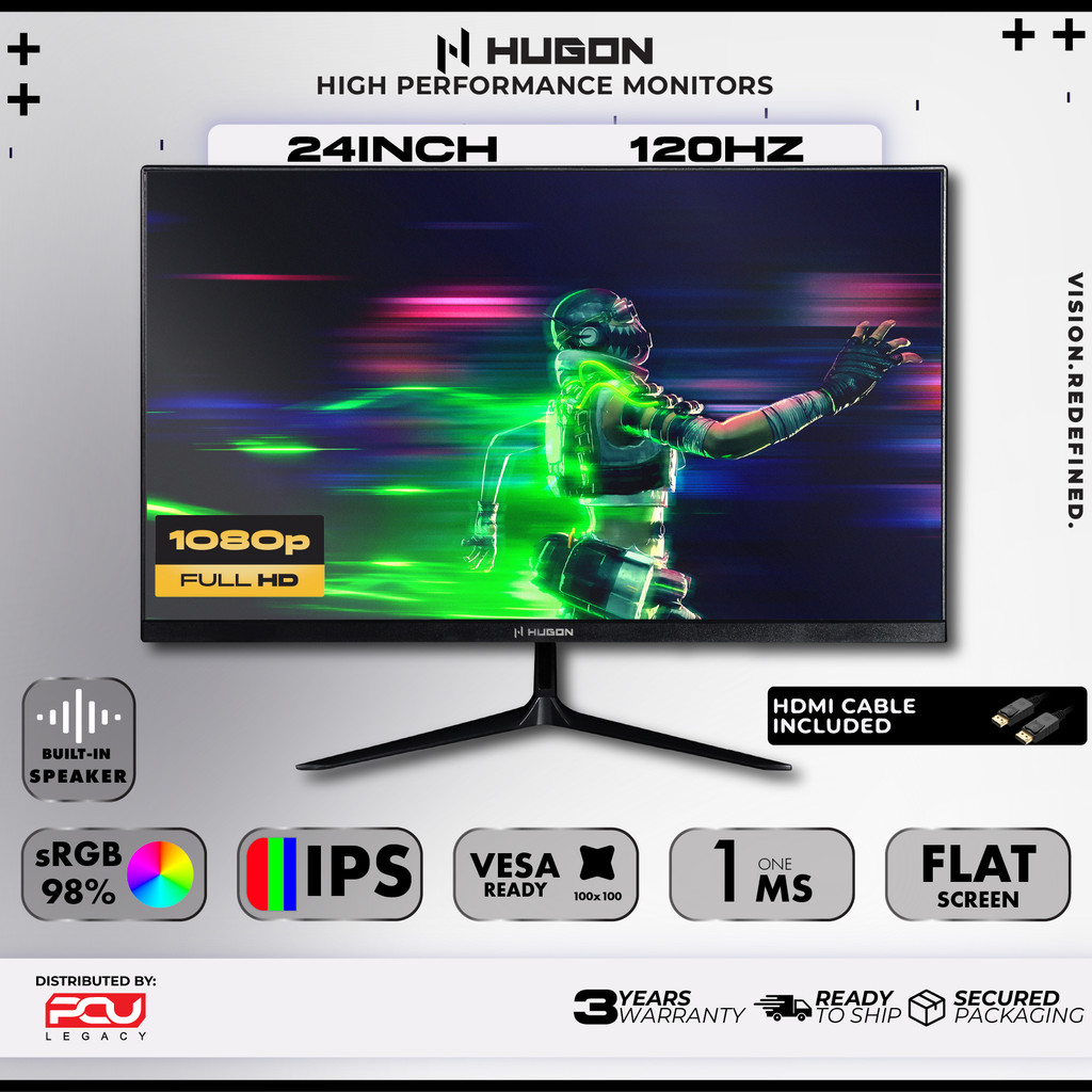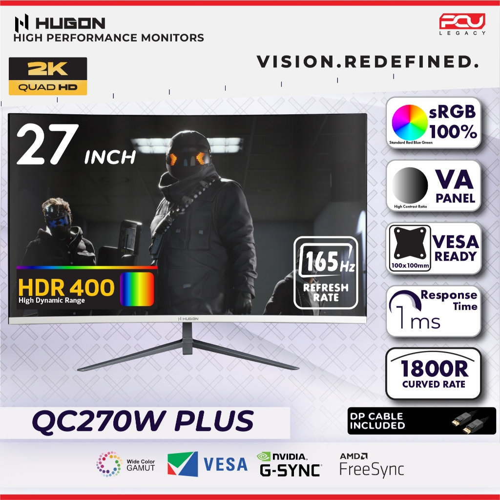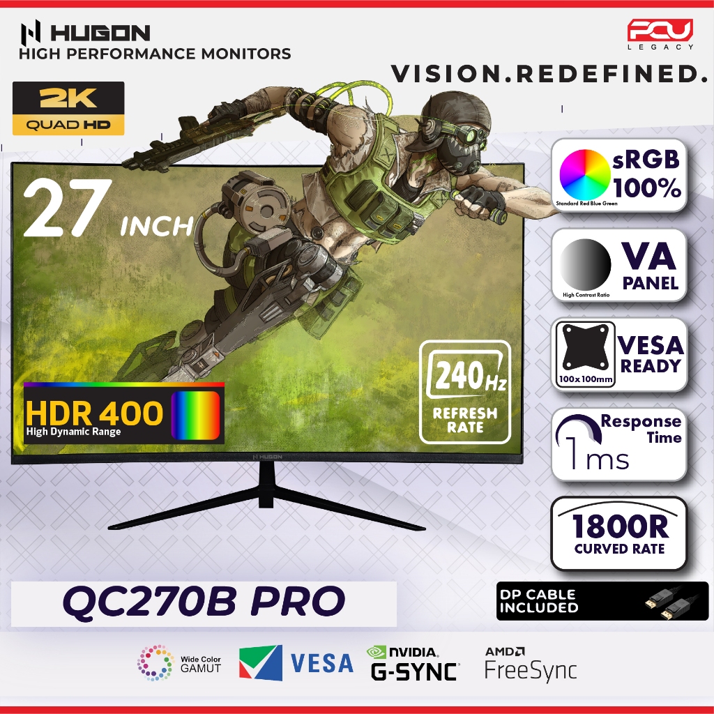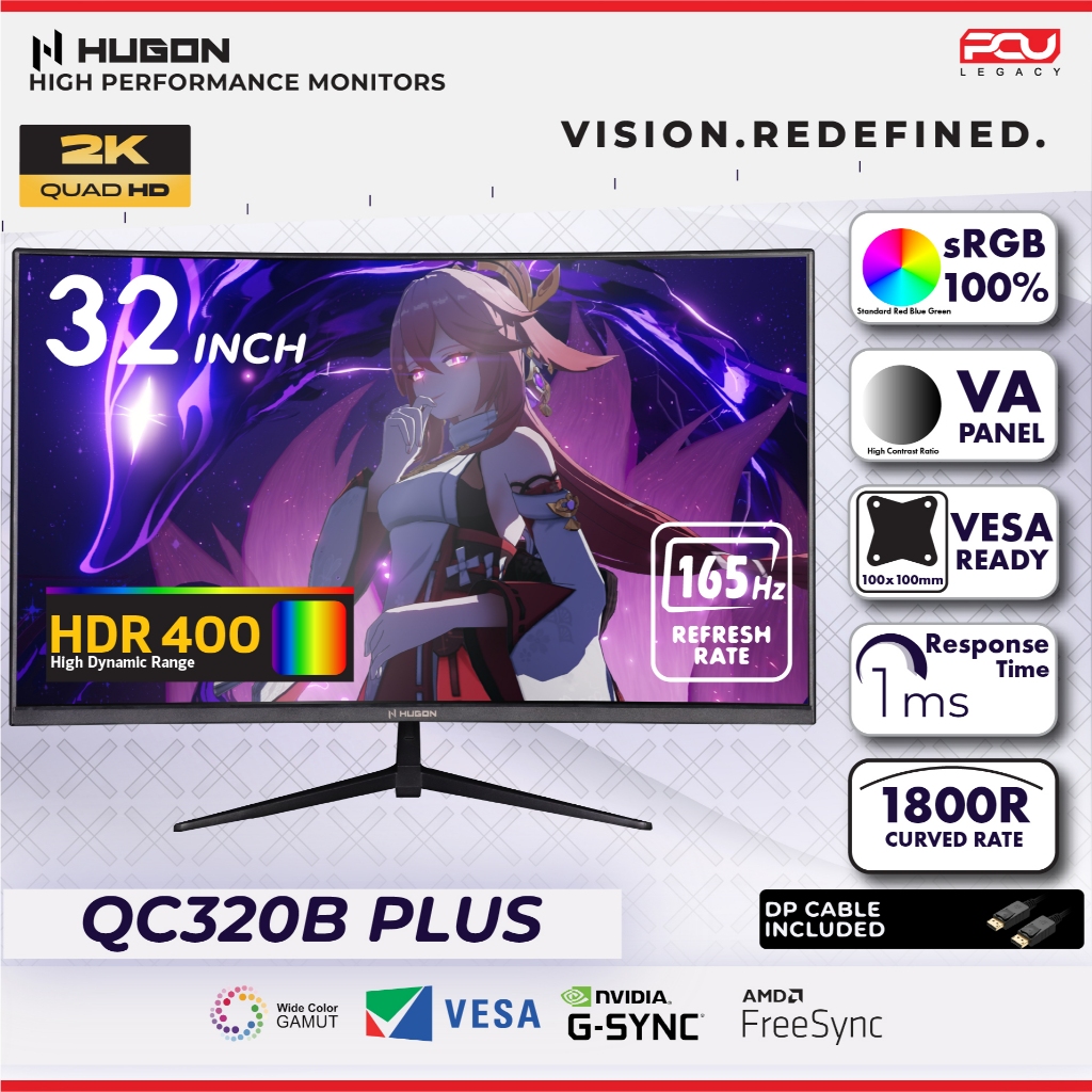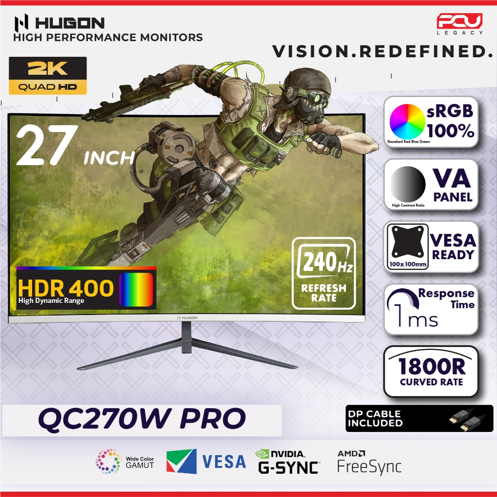 HUGON 24” 27" 32” CURVED 120Hz 180Hz 240Hz FHD 1080P QHD 2K UHD 4K HIGH PERFORMANCE GAMING COMPUTER MONITOR