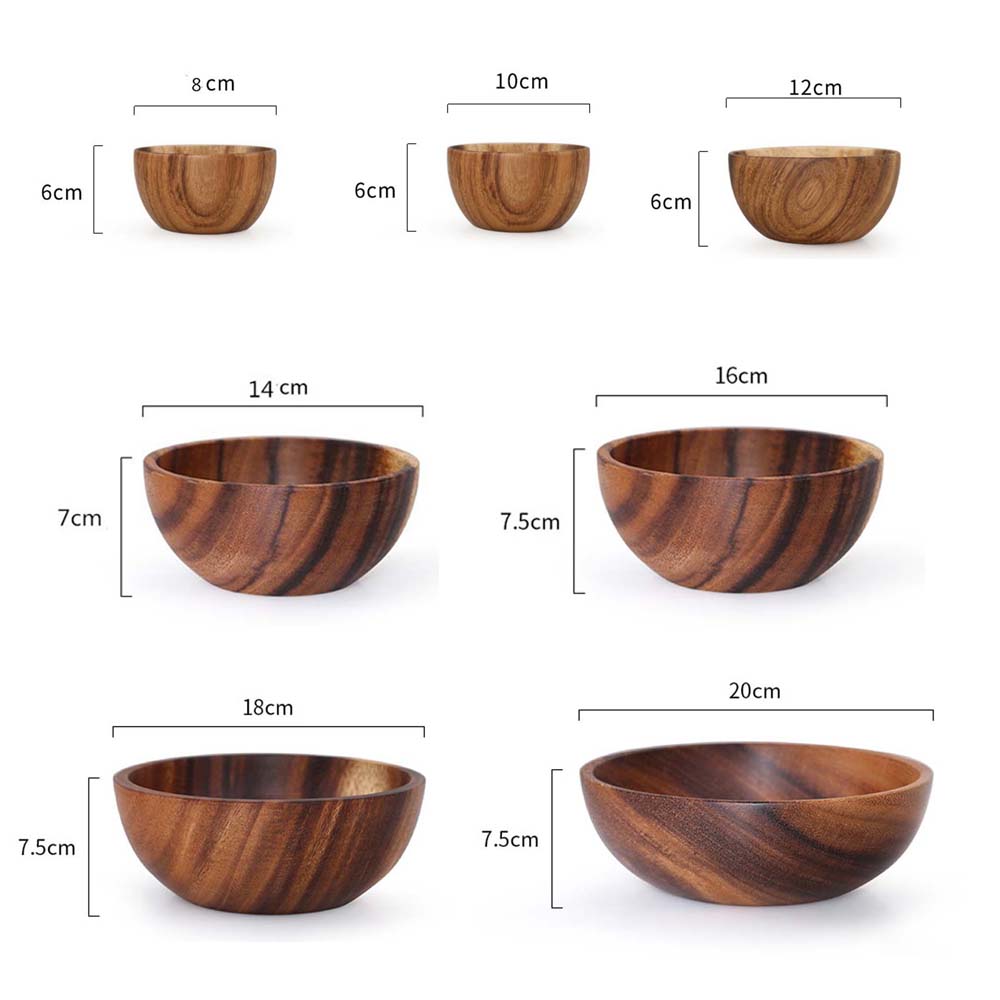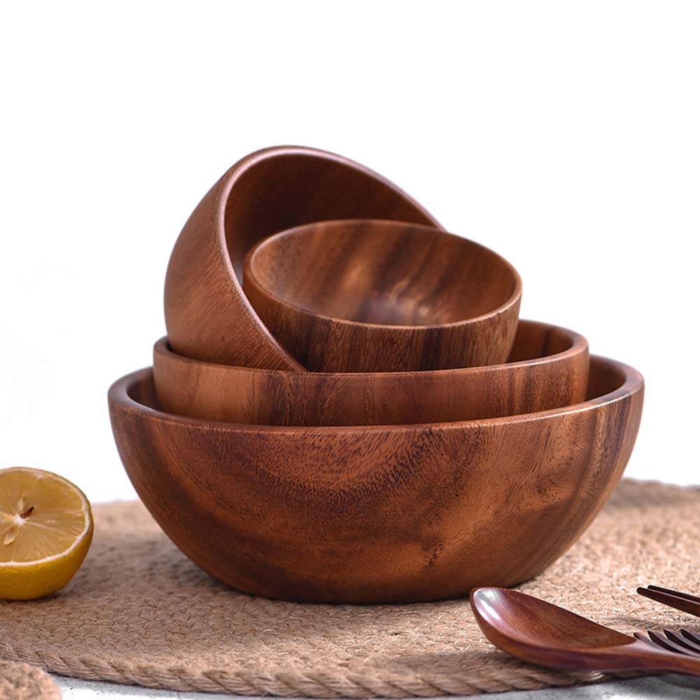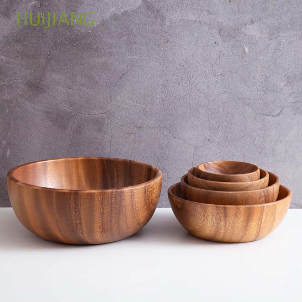 HUIJIANG Large Bowl Japanese style Wooden Bowl Ramen Bowls Natural Acacia Wood Container Wooden Creative Instant noodle Round Tableware