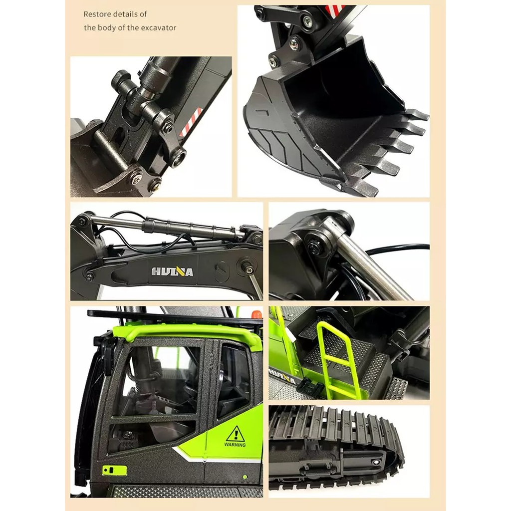 HUINA 1593 RC Excavator *Original* 2026 new version 1/14 Alloy Bucket Remote Control Excavator Penggali Bajak Tanah