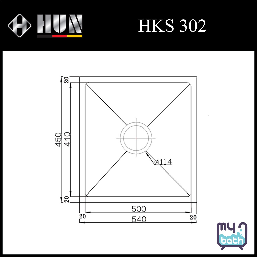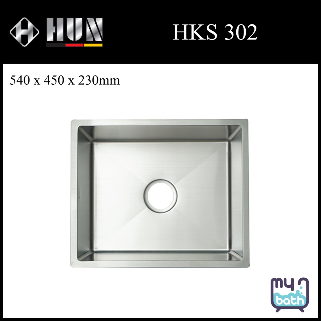 HUN HKS 302 Single Bowl Undermount Stainless Steel Kitchen Sink with Waste