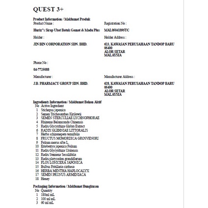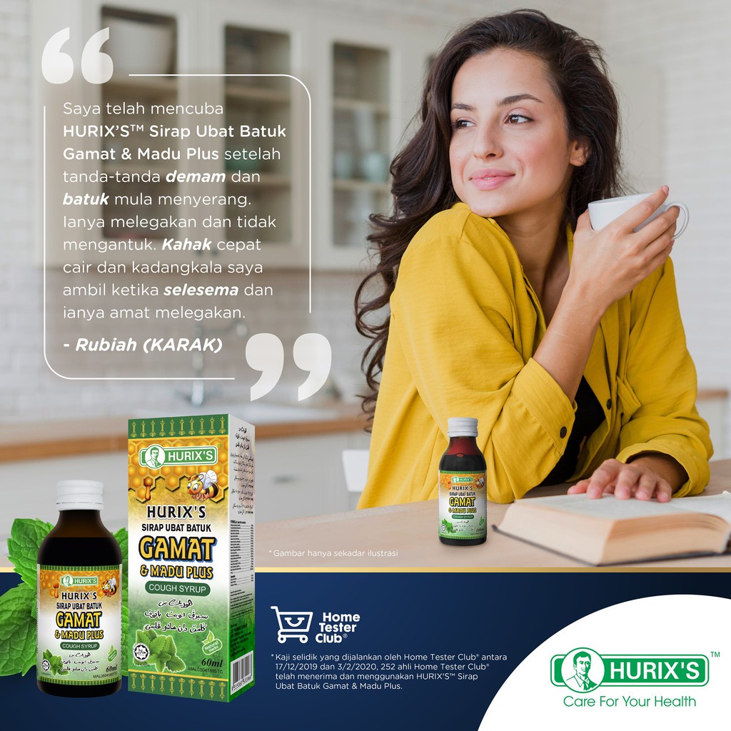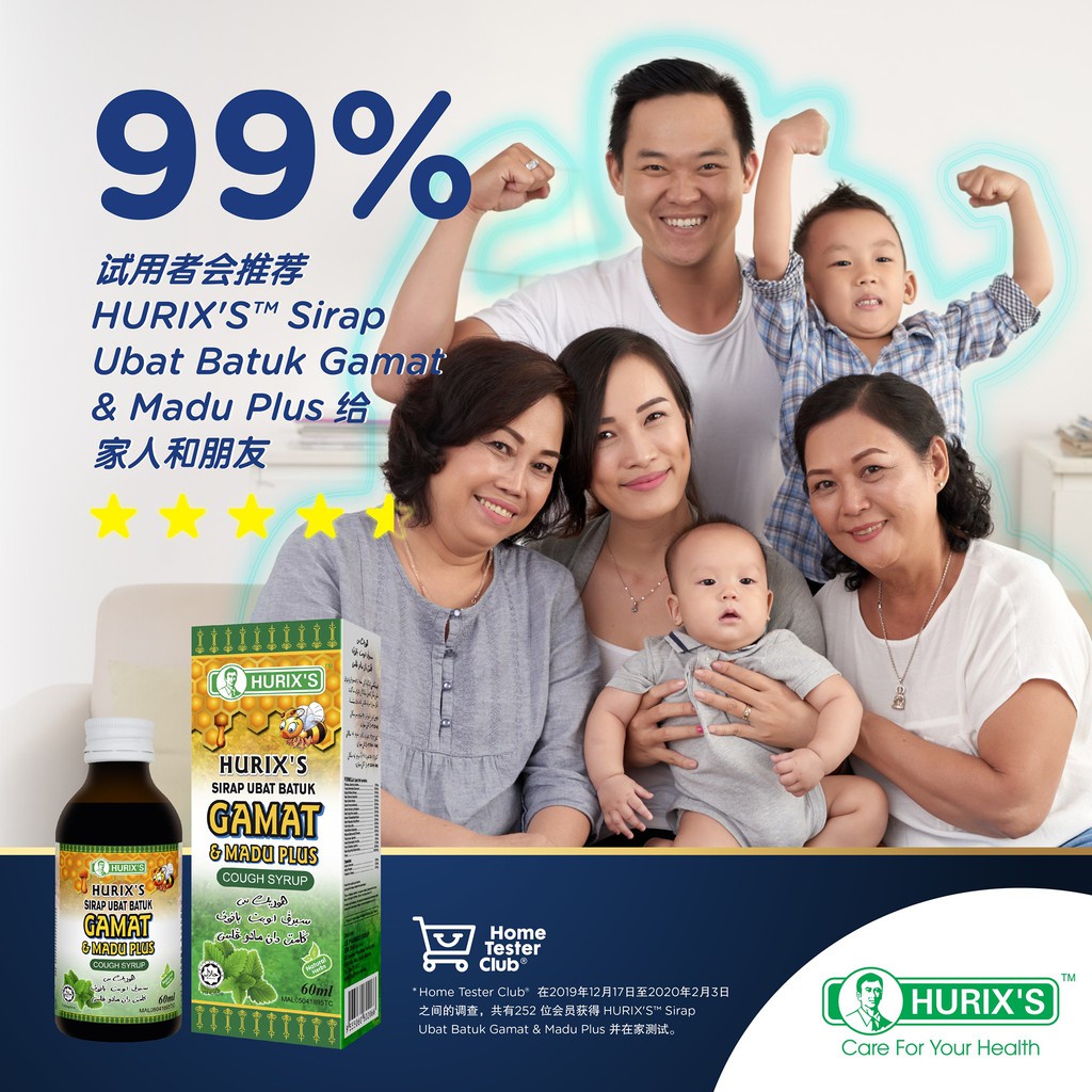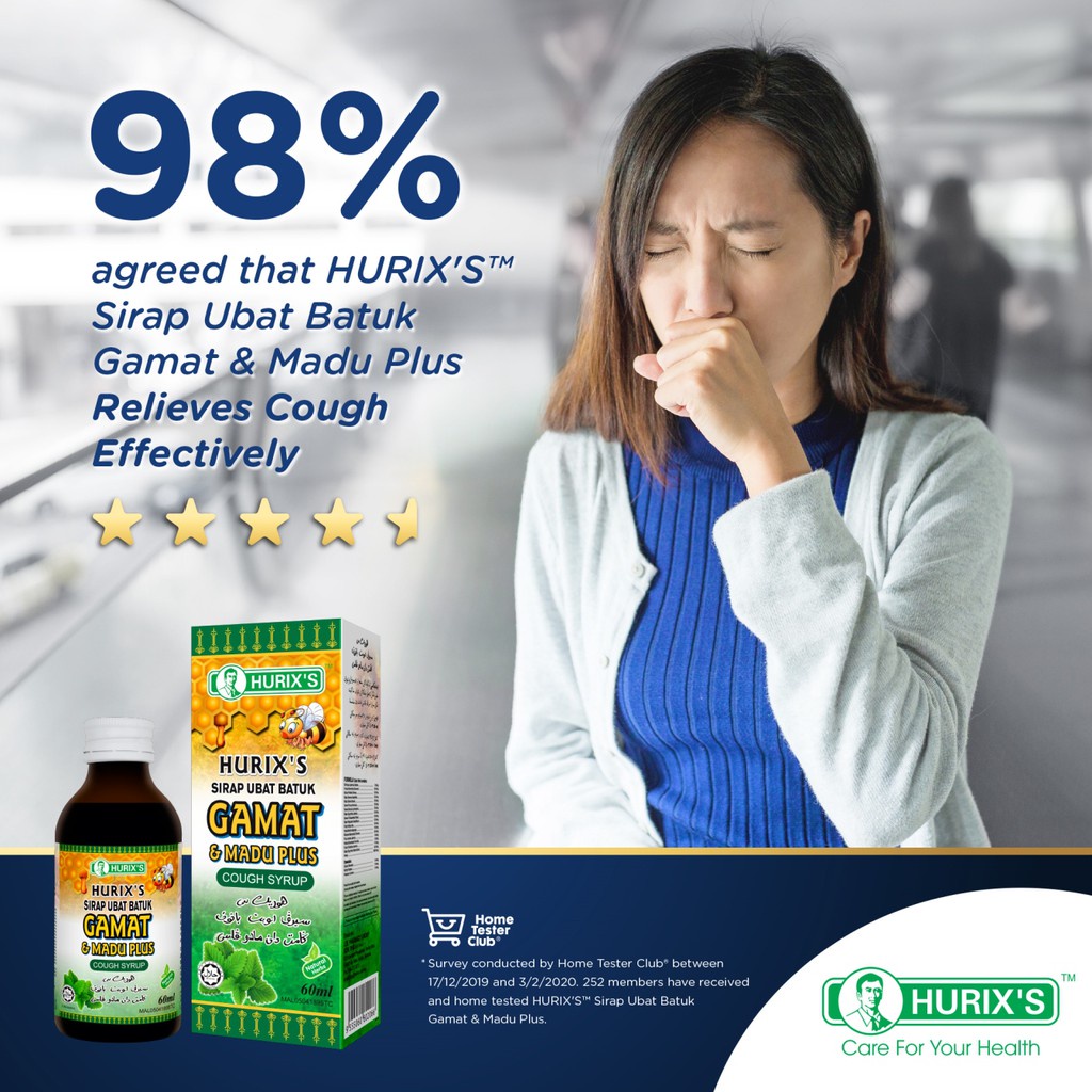 HURIX'S Sirap Ubat Batuk Gamat & Madu Plus Cough Syrup 60ml / 100ml Traditionally Used for Cough, Sore Throat & Cold
