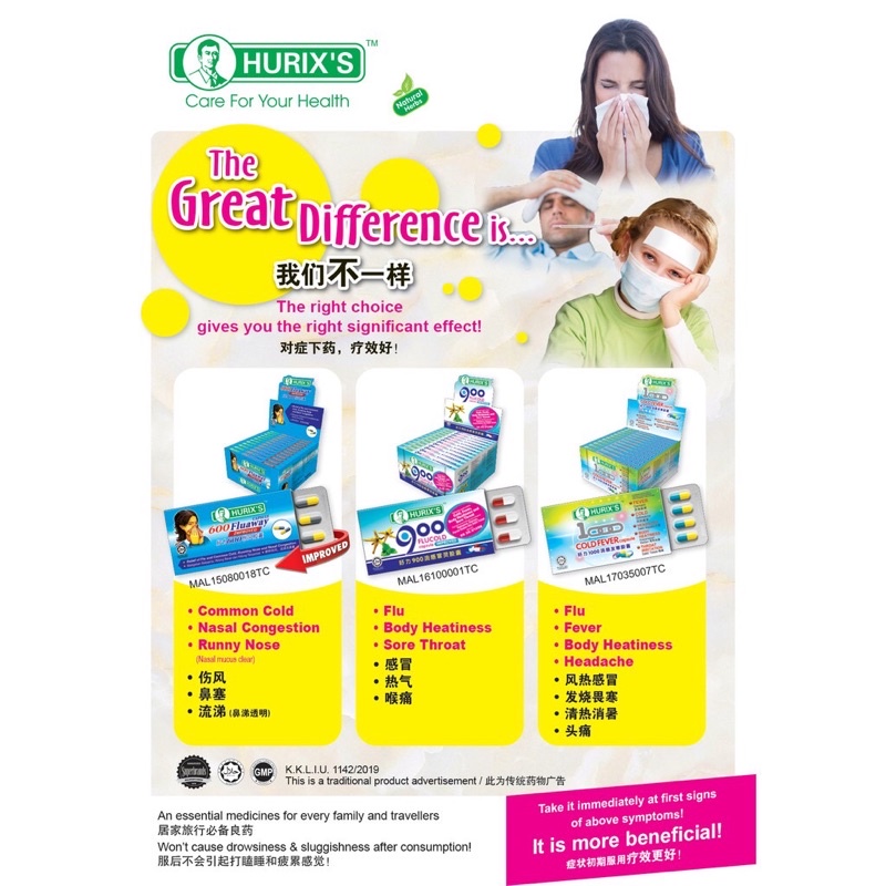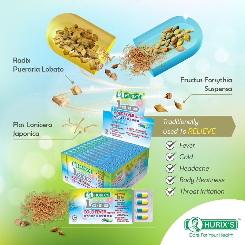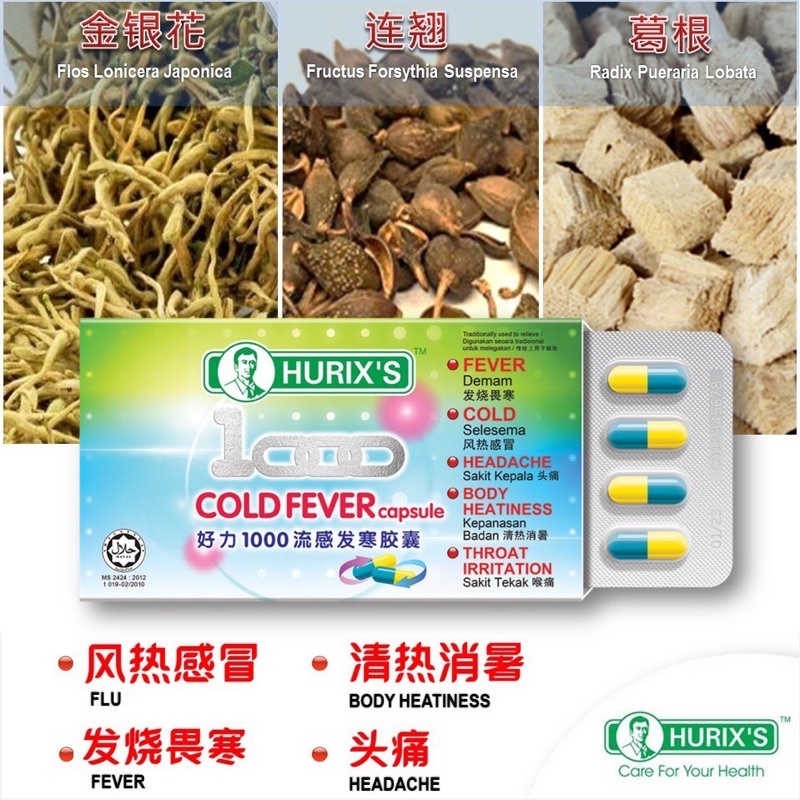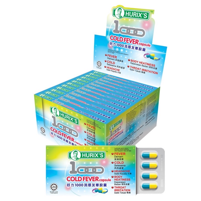 HURIX 1000 Cold Fever Capsule- 12 capsule cold flu bodyache itchy throat
