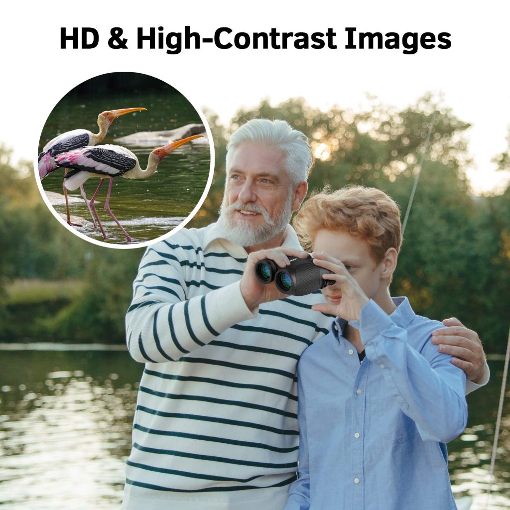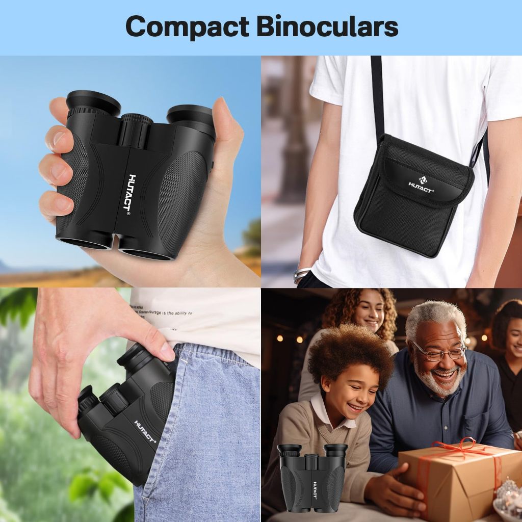 HUTACT 12x25 Binoculars Waterproof Compact Binoculars Low Light Vision for Bird Watching Hiking Fishing Outdoor for Adults and Kids