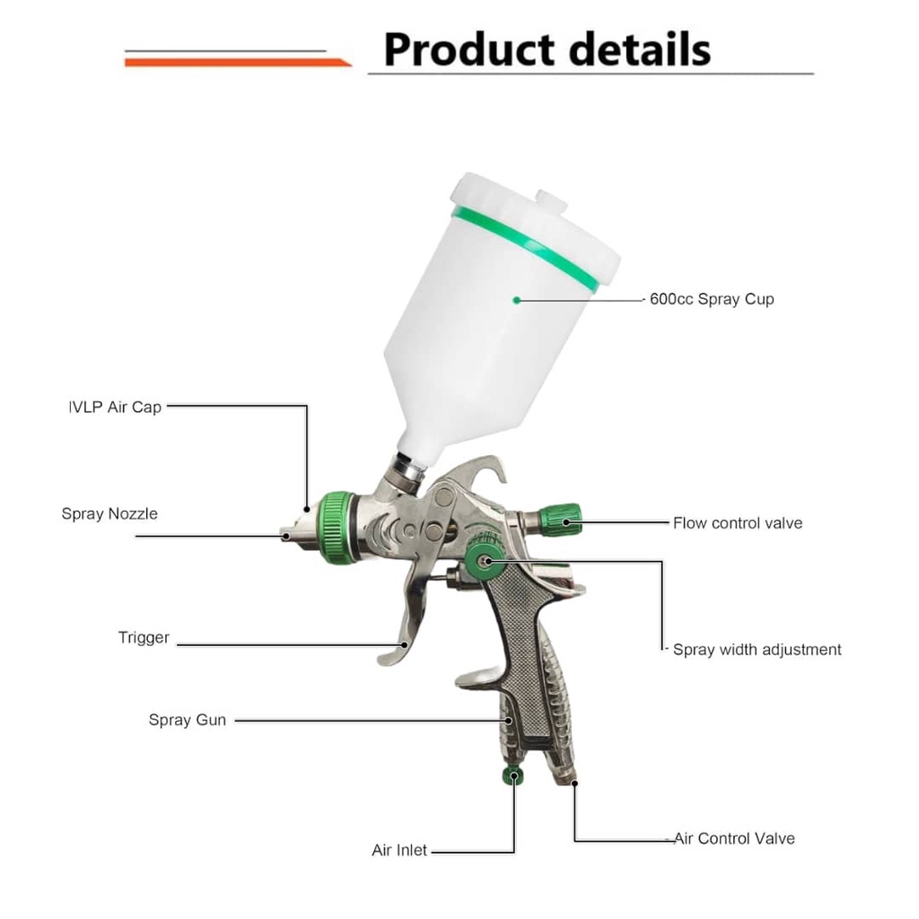 HVLP Spray Gun 1.3mm 600cc Car Painting Gun High Atomization Pneumatic Coating Tool