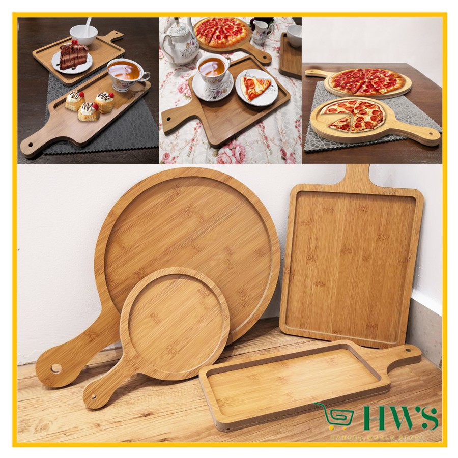 HWS DULANG KAYU PIZZA PIRING KAYU WOODEN PADDLE SERVING TRAY, ROUND PIZZA, RECTANGULAR PASTRY TRAY PAPAN