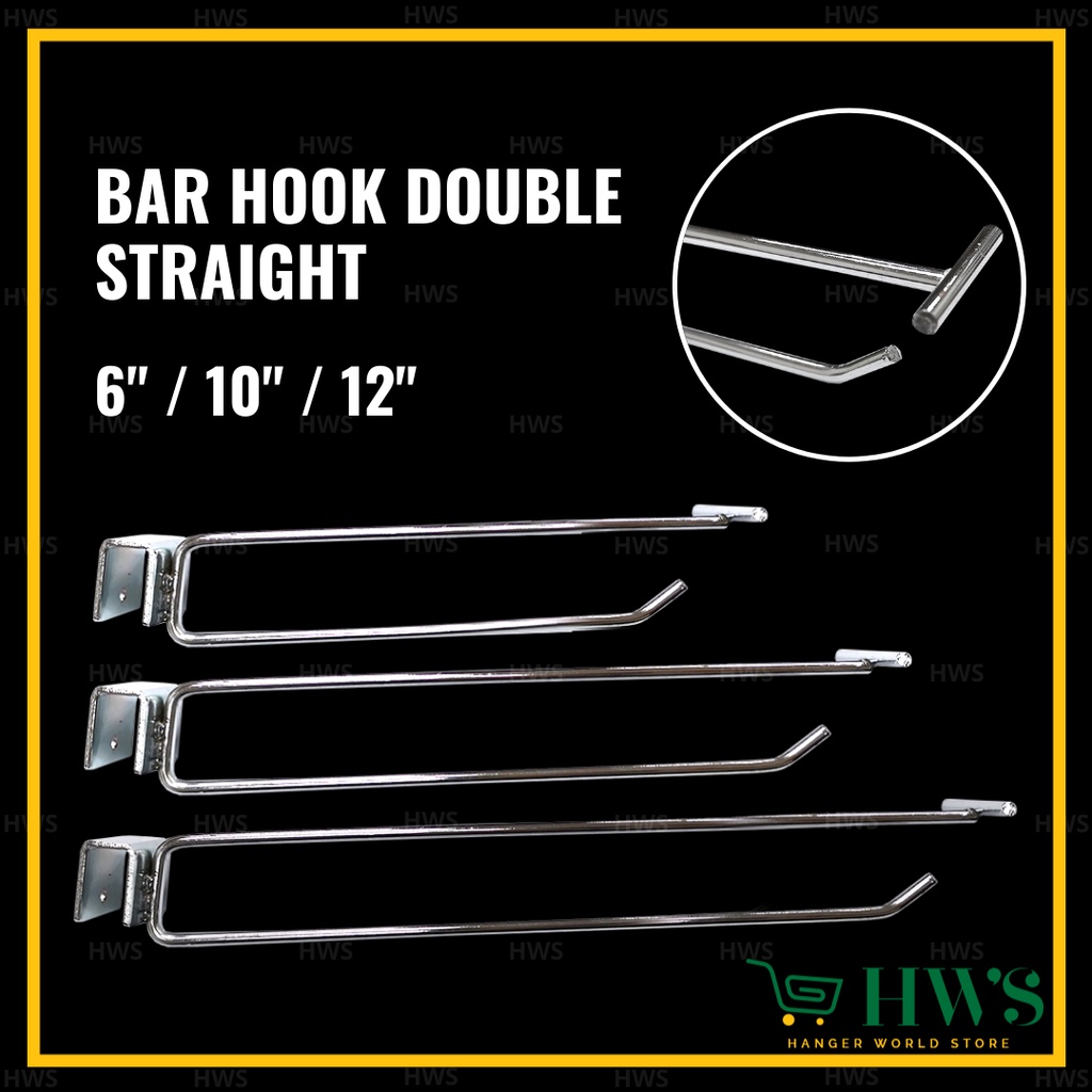 HWS HEAVY DUTY SQUARE BAR HOOK DOUBLE STRAIGHT (CHROME)