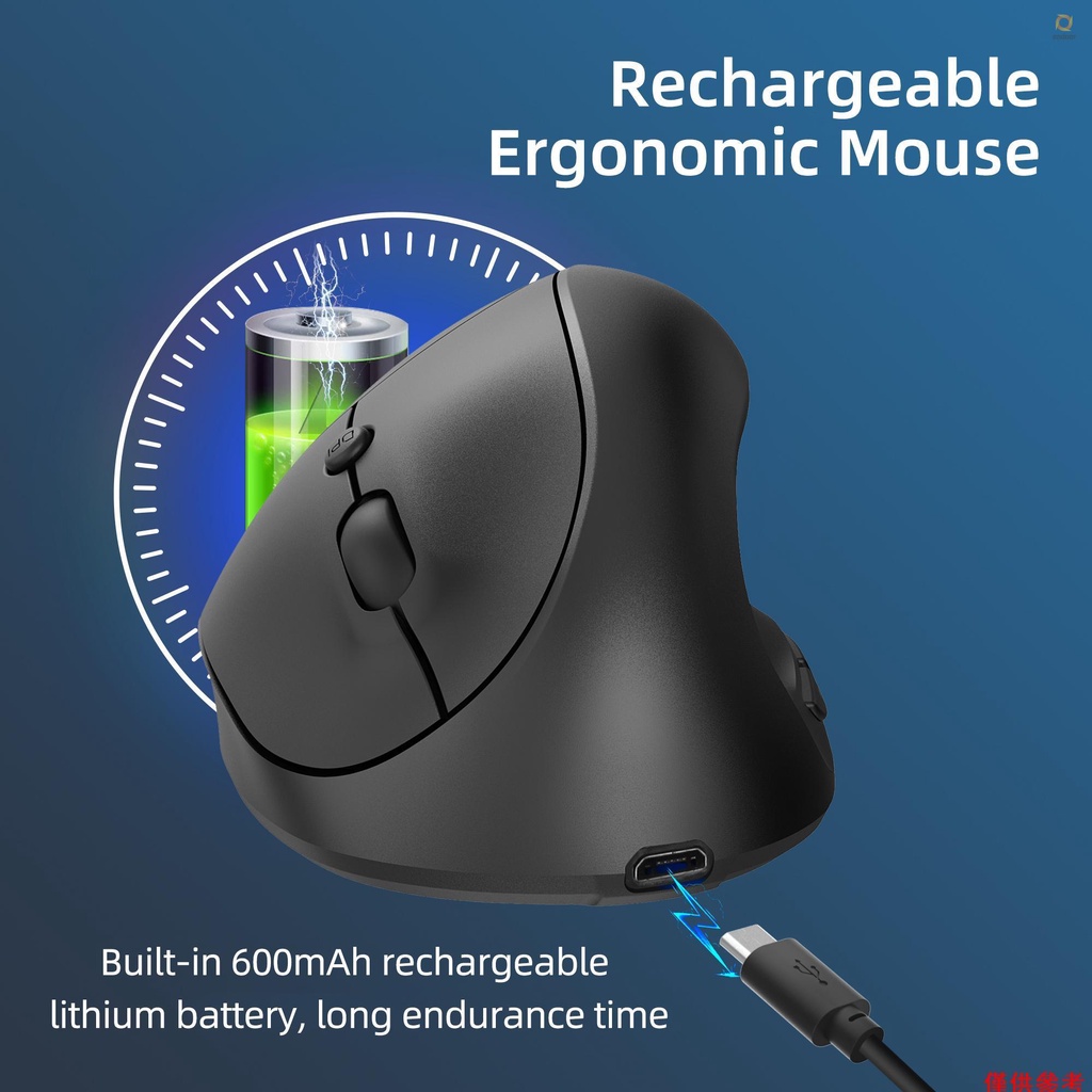 HXSJ X10 2.4G Wireless Vertical Mouse Ergonomic Mice 3-gear Adjustable DPI Built-in 600mAh Rechargeable Lithium Battery Black