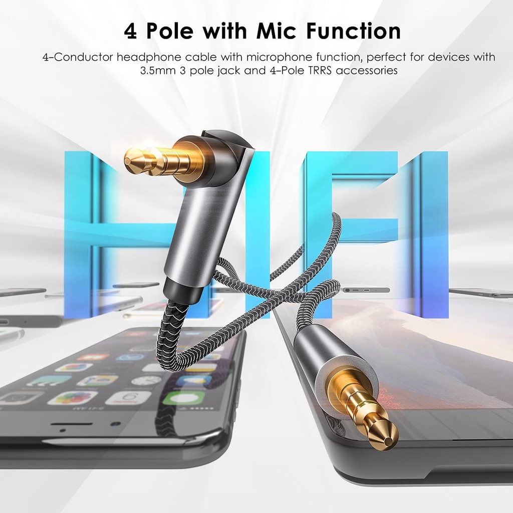 HY 4 Pole TRRS 3.5mm Male to 4 Pole TRRS 3.5mm 'L' Male Extension Cable for Audio