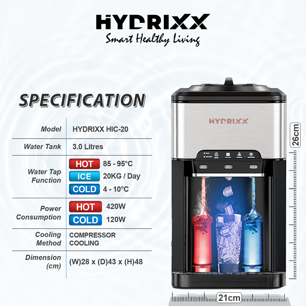 HYDRIXX 3-in-1 Ice Making Hot & Cold Water Purifier HIC-20 - Multi-Stages Antibacterial Halal Filter