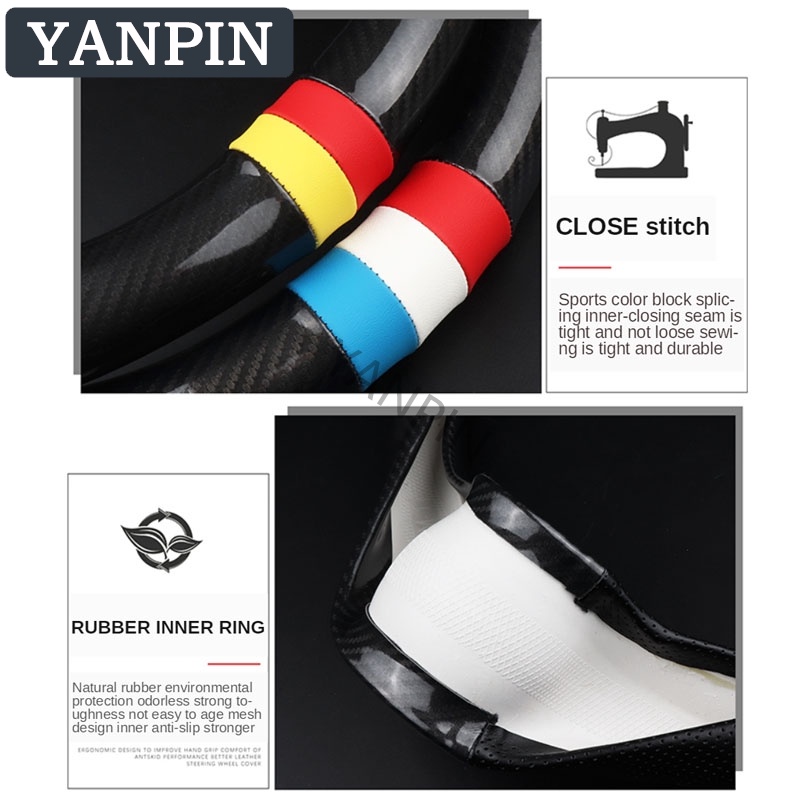 HYUNDAI Steering wheel cover in carbon leather Suitable for Getz/Atos/Matrix/I10/Elantra/ATF/Accent/Starex/Tucson/Sonata/I40/Trajet/Santa Fe/H1/Veloster/Avante
