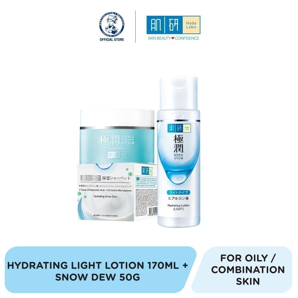 Hada Labo Hydrating Light Lotion 170ml + Snow Dew 50g - For Oily/ Combination Skin [Hydration/ Moisturizing]