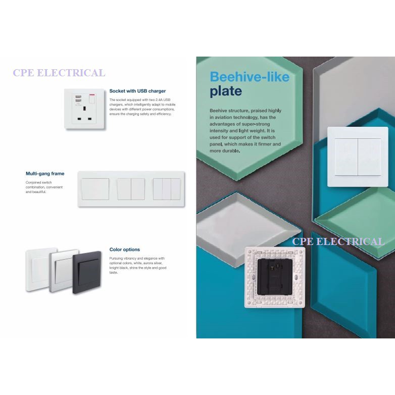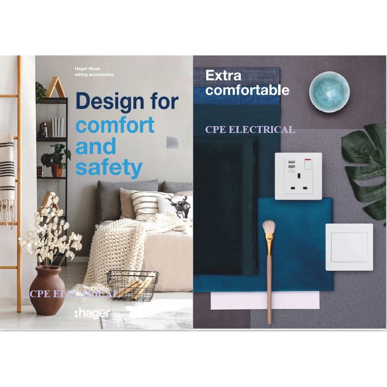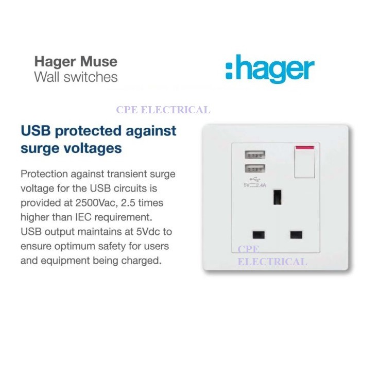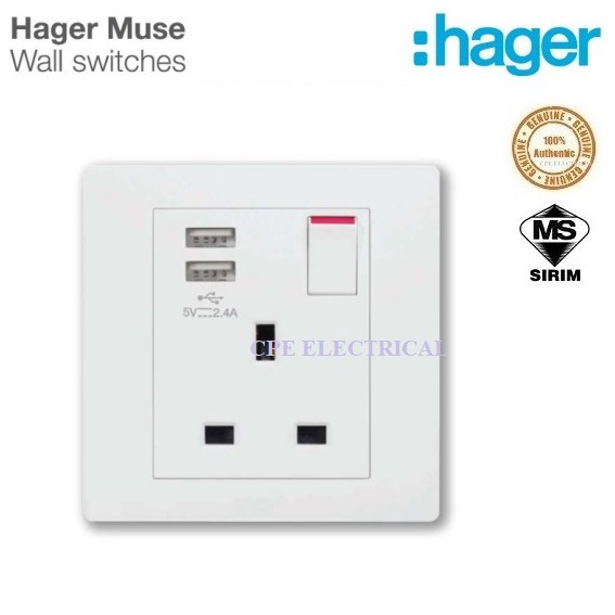 Hager MUSE WGMS113SUSB13A Single Switched Socket Outlet (with 2-ports USB 2.4A) SIRIM APPROVE