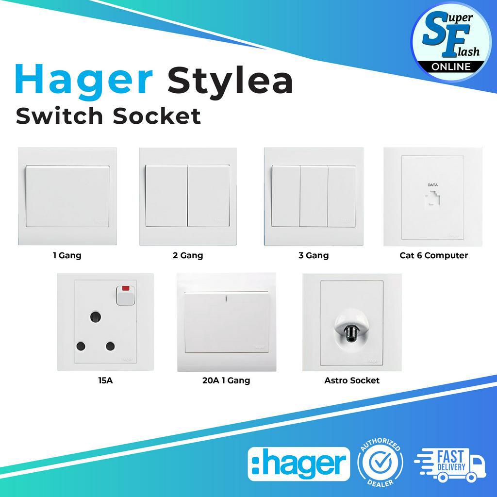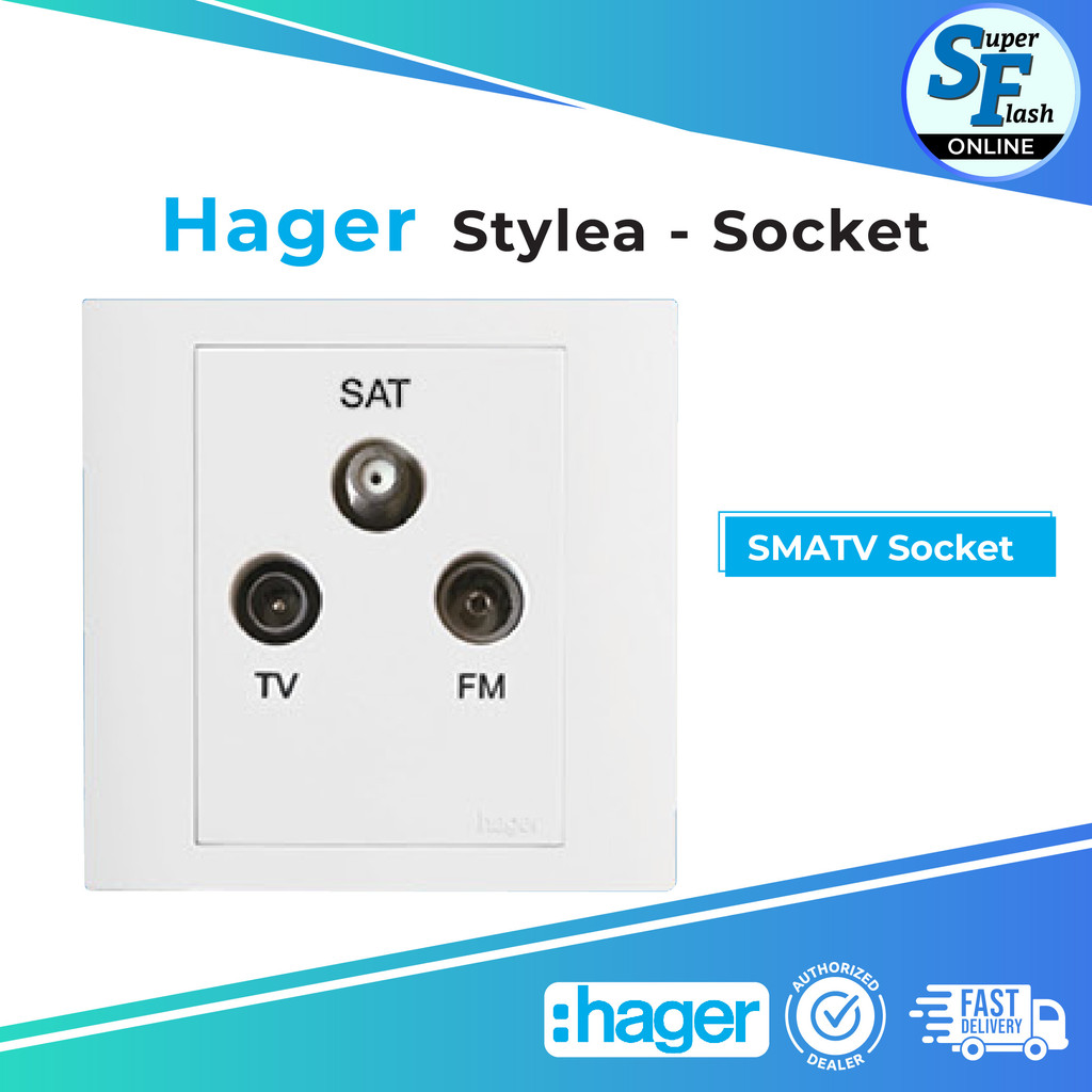 Hager Stylea Switches & Sockets CAT6/SMATV/32A DP Control || Suis Rumah
