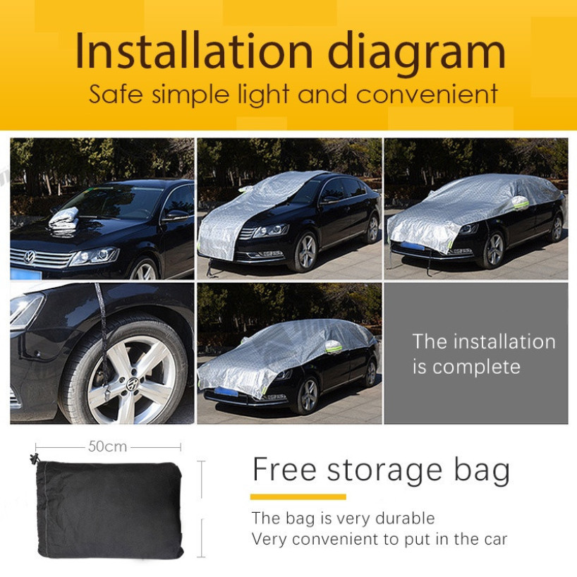 Half Car Cover Universal Premium Outdoor Sun Protection Resistant Waterproof Raindust Sun UV for Sedan SUV/MPV/Hatchback Car Cover with Luminous Mark