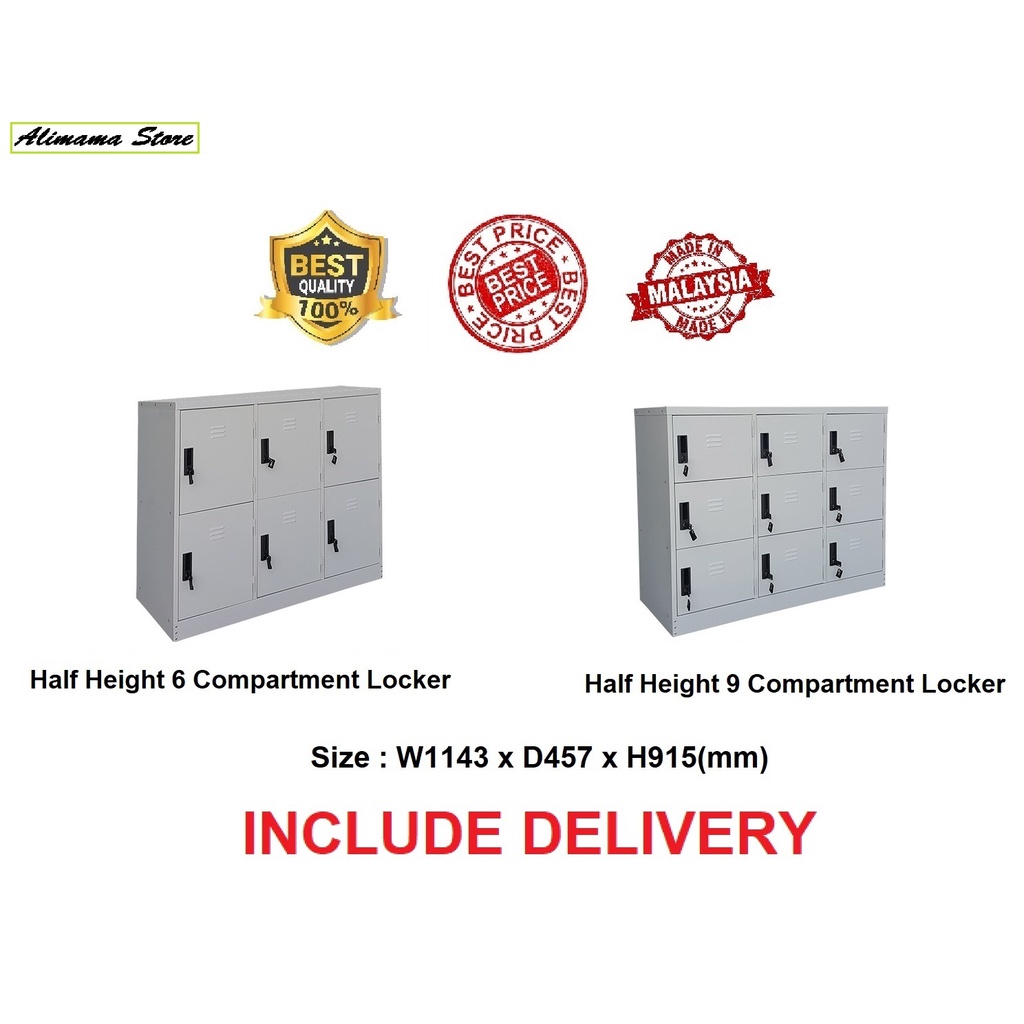 Half Height 6 , 9 Door Compartment Steel Locker L1143mm
