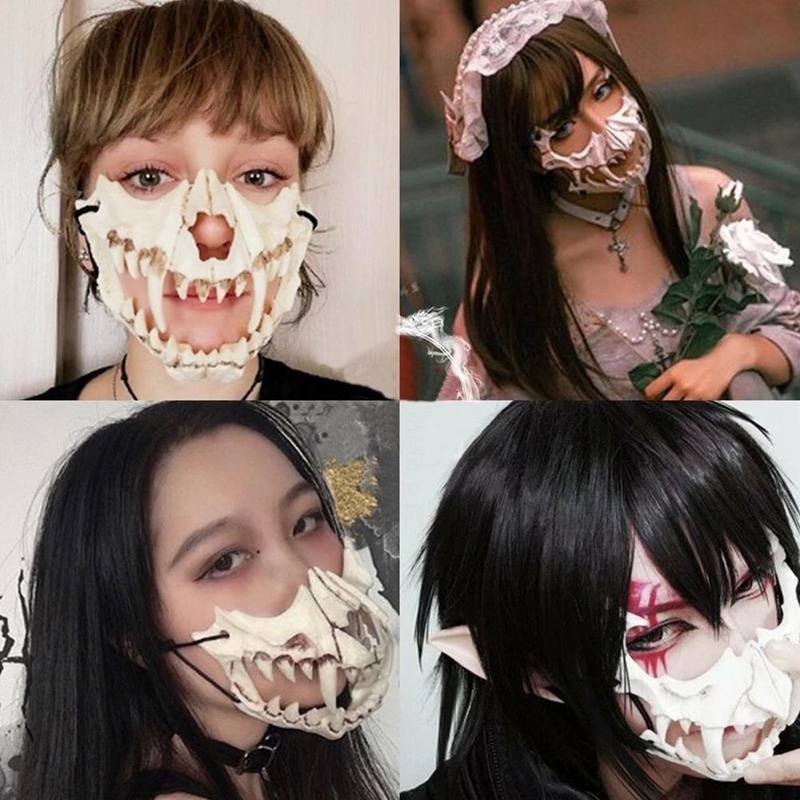 Halloween Carnival Party Skeleton Mask/ Anime Dragon God Werewolf Half Face Mask/ Cosplay Dance Prom Costume Props