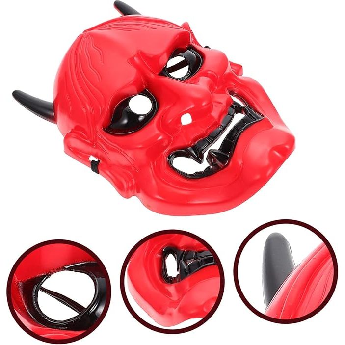 Halloween Plastic Red Evil Head Mask Full Face Party Dance Gathering Scary Look Ghost Mask Masquerade