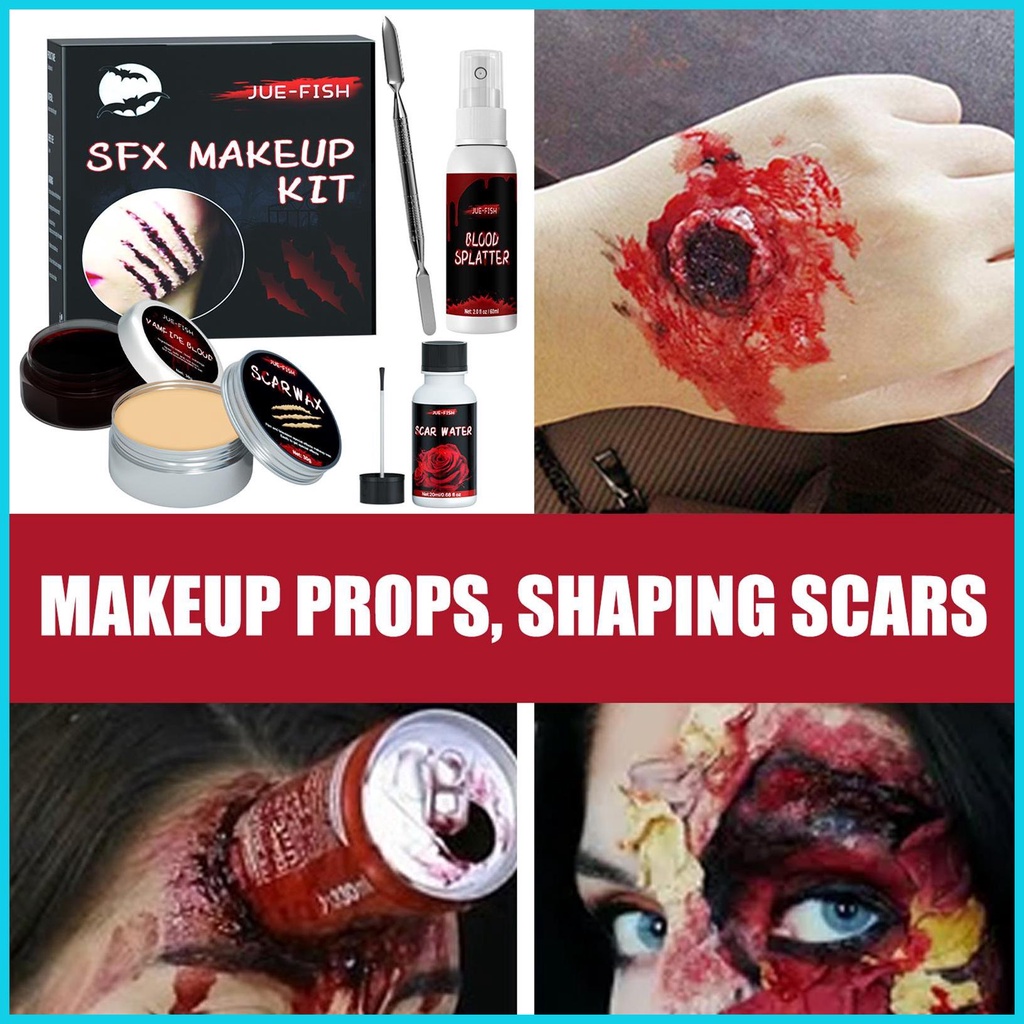 Halloween Sfx Makeup Kit Professional Face Body Paint Halloween Wound Scar Wax Makeup Fake Scab Blood Spatula sermy
