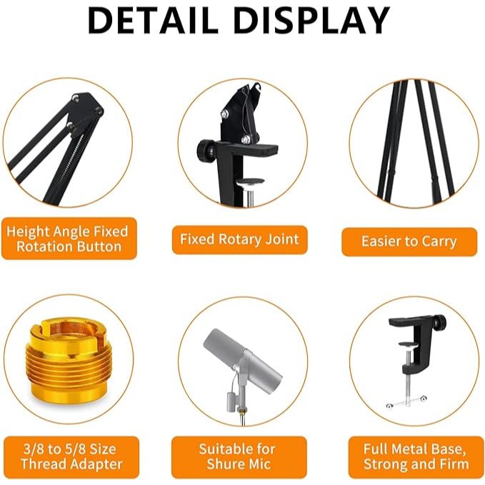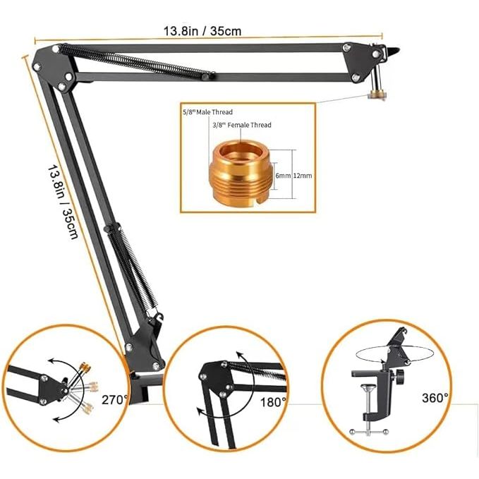 Snowball Mic Boom Arm - Heavy Duty Mic Boom Arm Desk Mount Adjustable Suspension Mic Stand Compatible with Audio-Technica AT2020,AT2020USB+, AT2035, ATR2500-USB, ATR2100-USB,Blue S