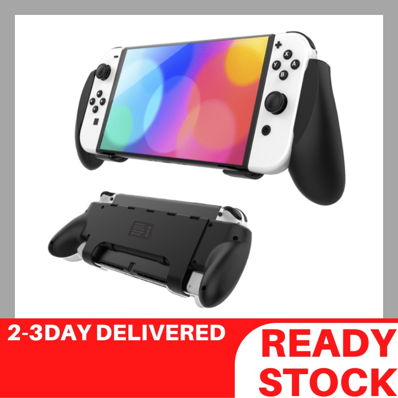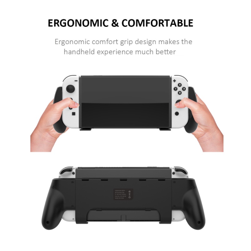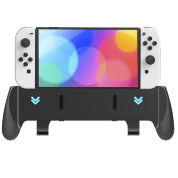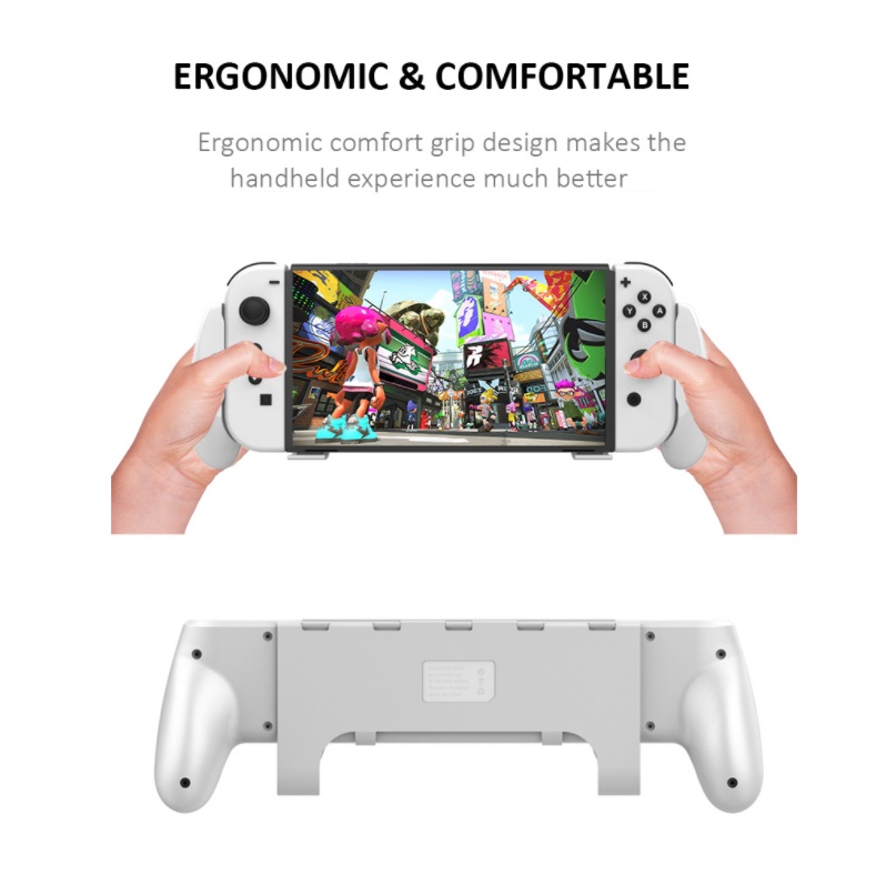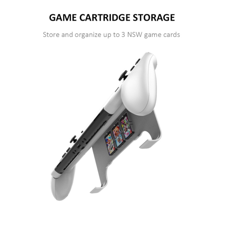 Nintendo Switch OLED Hand Grip Stand | Ergonomic Handle Holder with Kickstand & Game Cartridge Storage