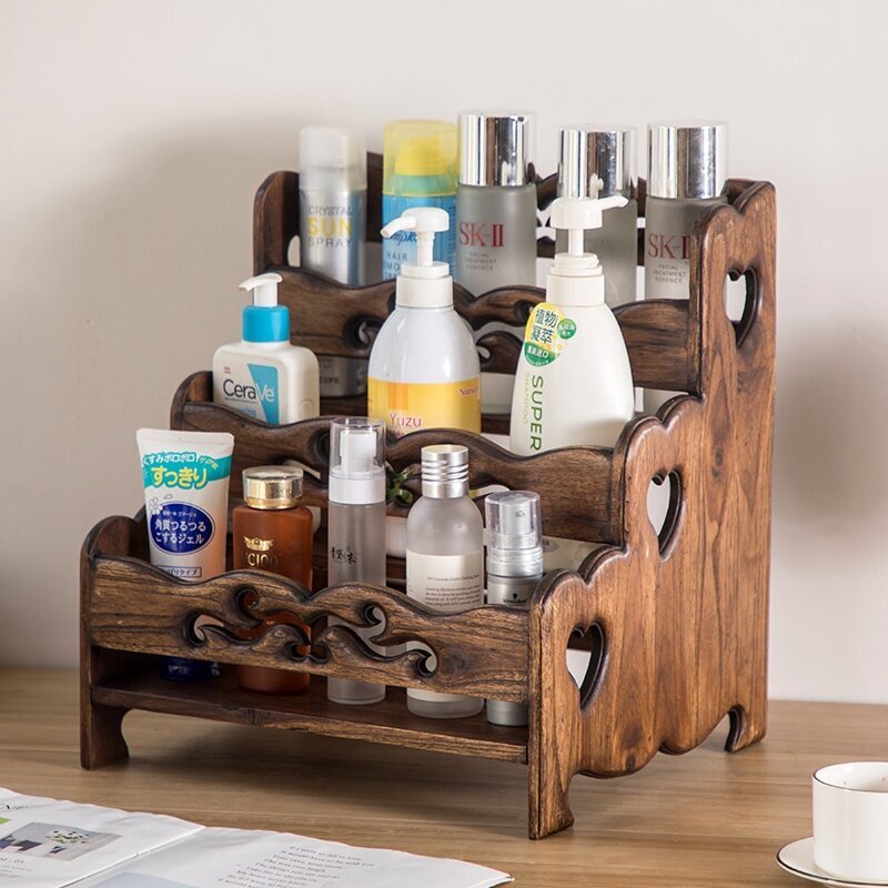 Countertop Storage Rack Teak Vertical Rack Bathroom, Kitchen, Office Desk, Dressing Table Organizer