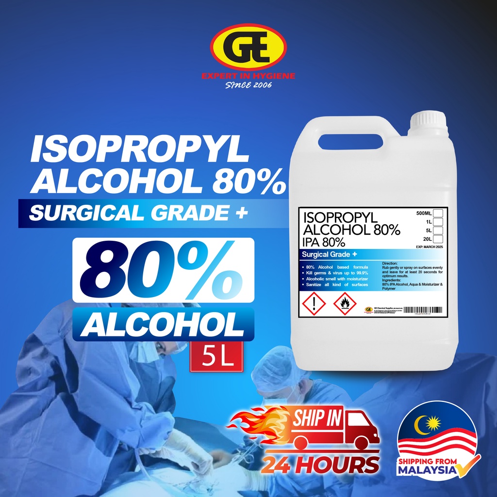 Hand Sanitizer Isopropyl Alchohol IPA 75% 80% 5L Rubbing Alcohol Wipe Disinfectant Liquid Sanitizer Spray 消毒 医用酒精 異丙醇