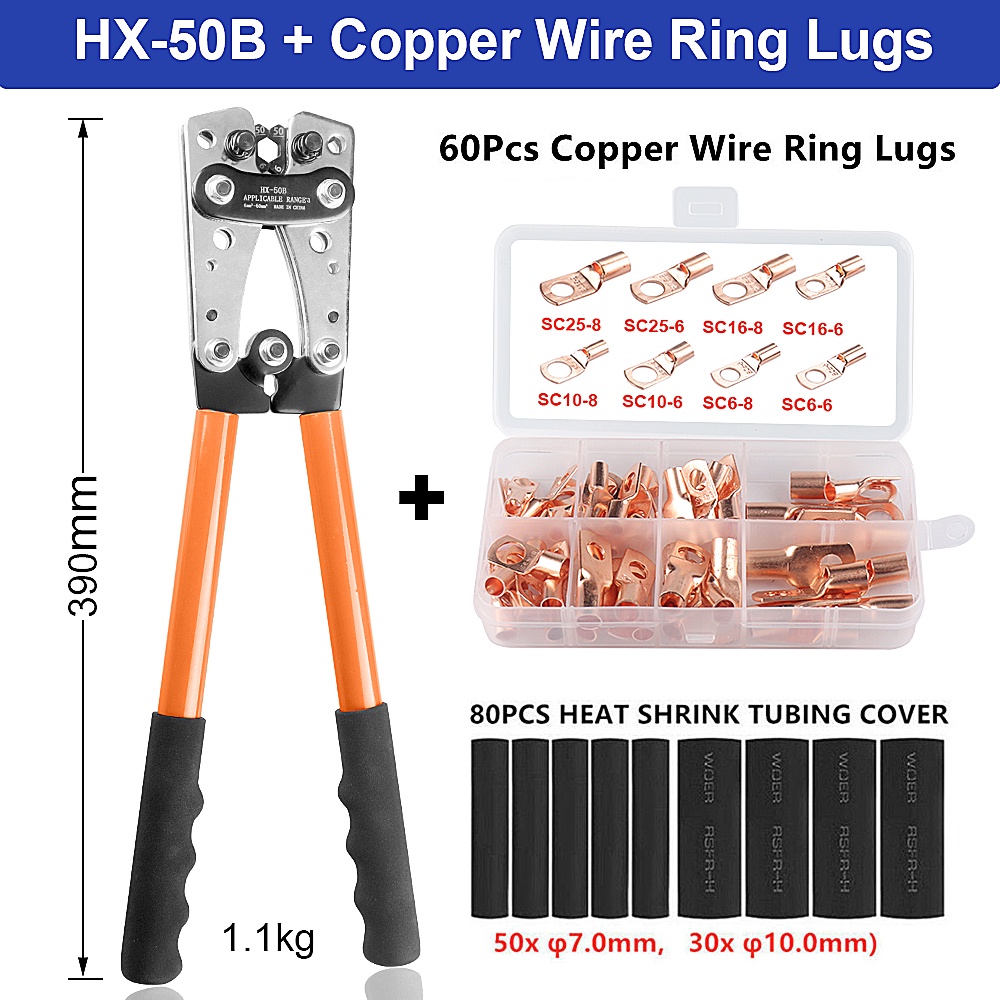 Hand Tools Cable Crimping Pliers HX-50B 6- 50mm2 AWG 8 - 1/0 Suitable For Cable Lug Automobile Copper Ring Terminal Clamper