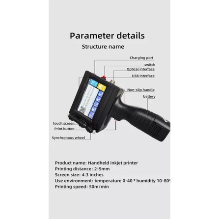 Handheld Expiry Date Inkjet Printer 12.7mm