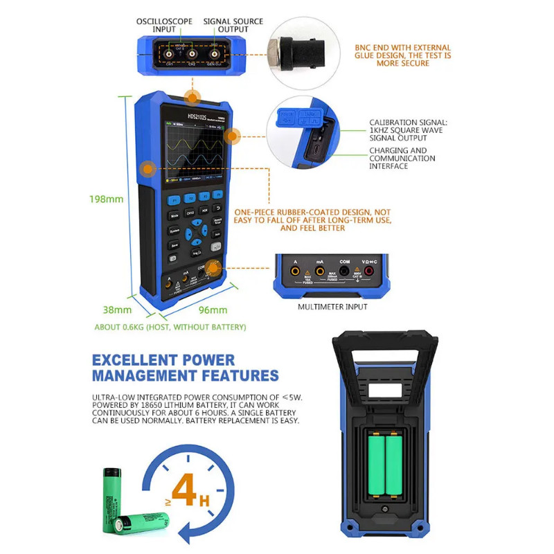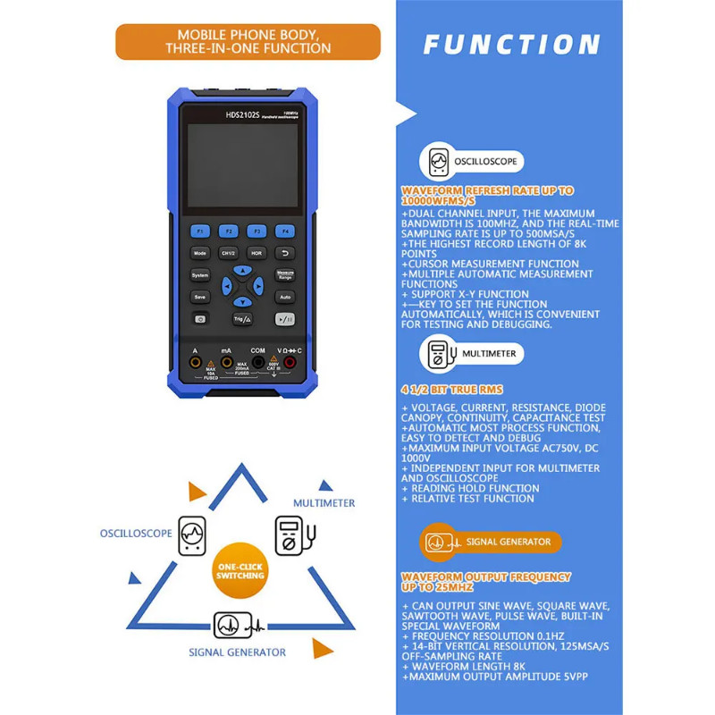Handheld Oscilloscope Multimeter 2-in-1 HDS200 Multimeter Digital Oscilloscope True-RMS Multimeter