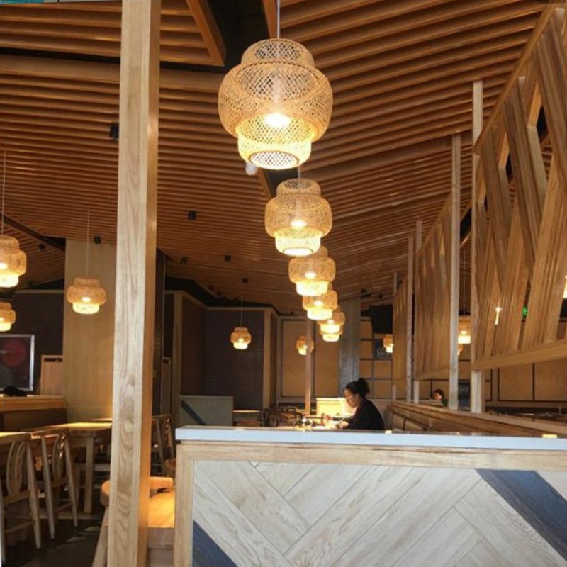 🔥Handmade Bamboo Lampshade Pendant Ceiling DIY Restaurant Aisle Lamp Shades Weave Hanging Light (Without Light Source)