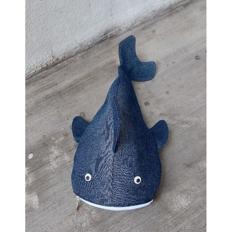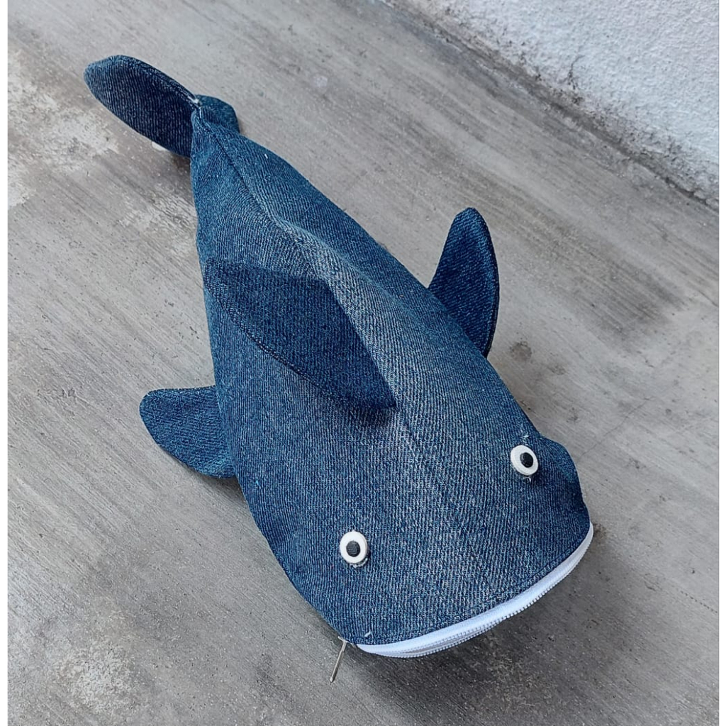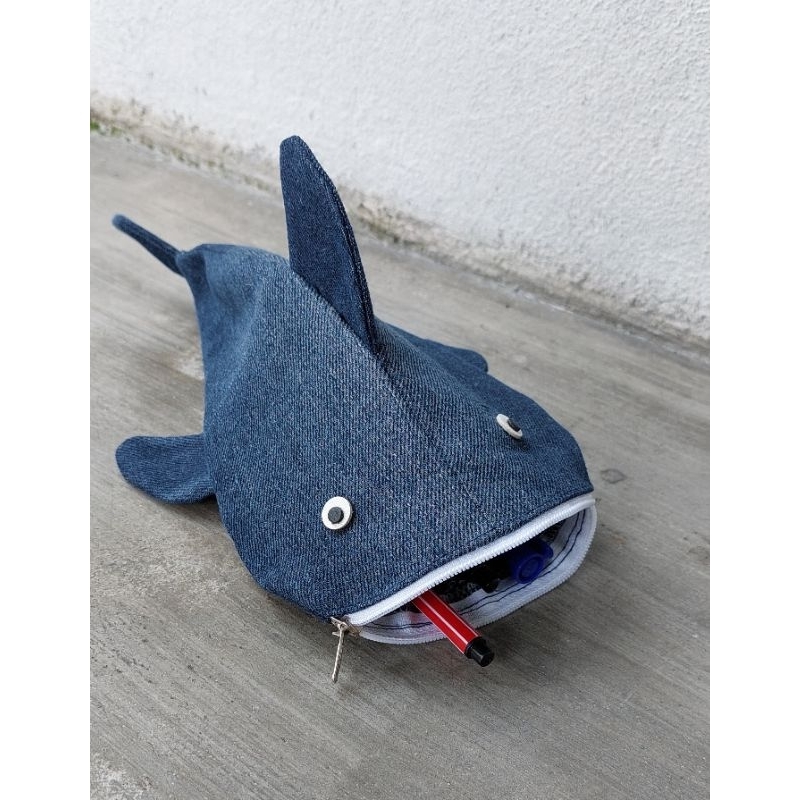 Handmade Denim shark bag, shark pencil case, shark pencil pouch, camo zipper pencil case, shark party gift
