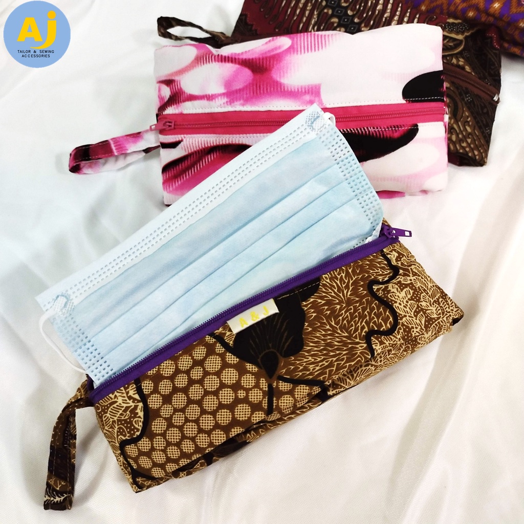 Handmade Face Mask Bag | Tissue Bag | Cosmetics Bag| Multipurpose Bag made by kain Batik | with Zipper