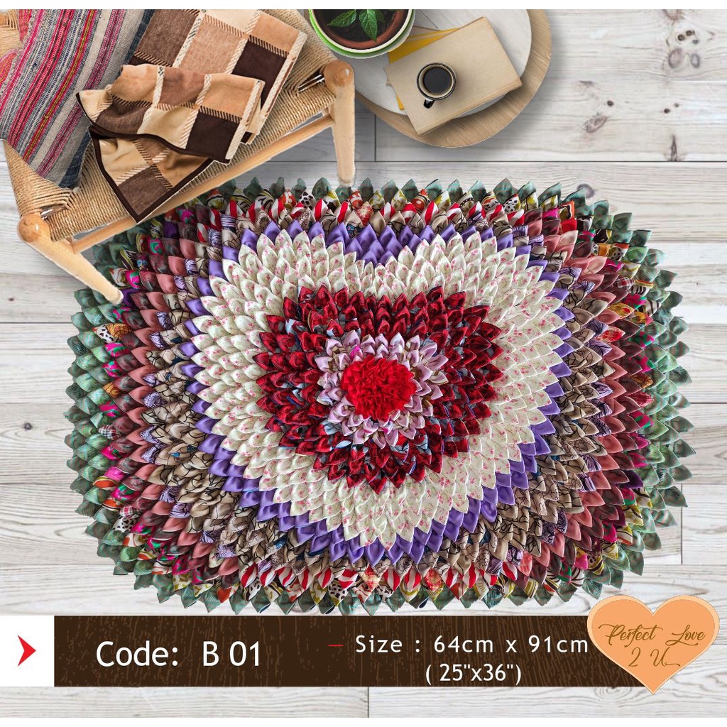 Handmade Floor Mat⭐Ready Stock⭐手工制作“抹脚布” ” Alas Kaki.Oval shape(椭圆形)(21" x 27"),(23" x 28"),(26" x 35")