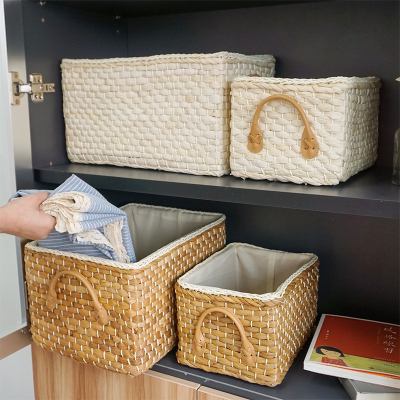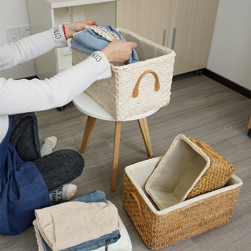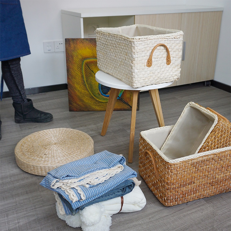 Handmade Straw Storage Box Basket Rattan Fruit Container Woven Storage Dirty Clothes Basket
