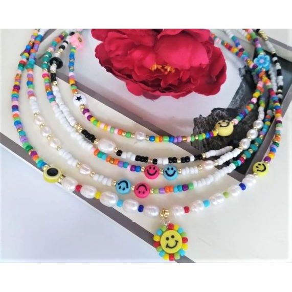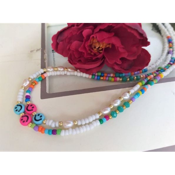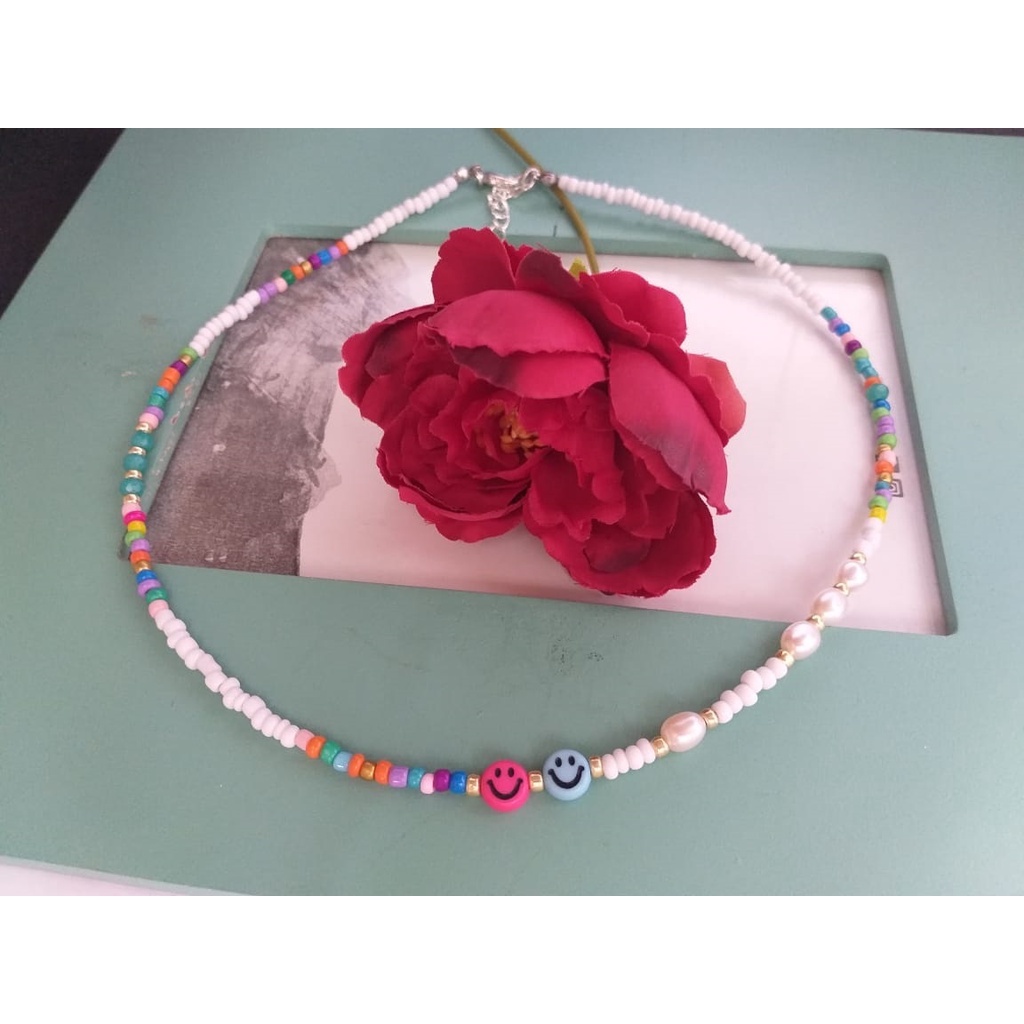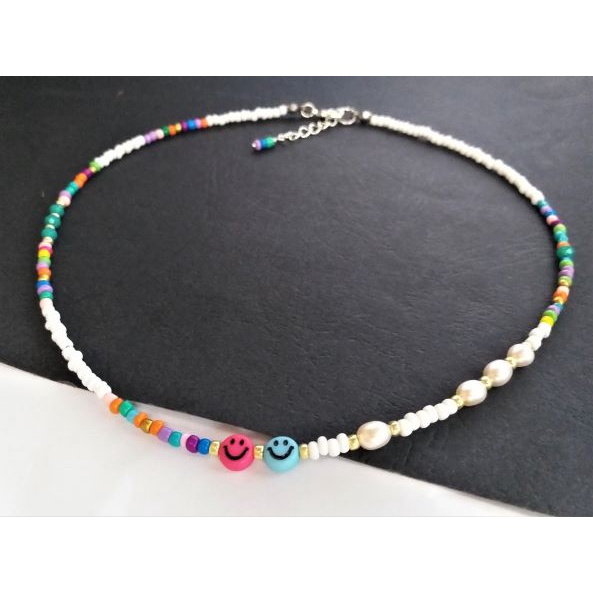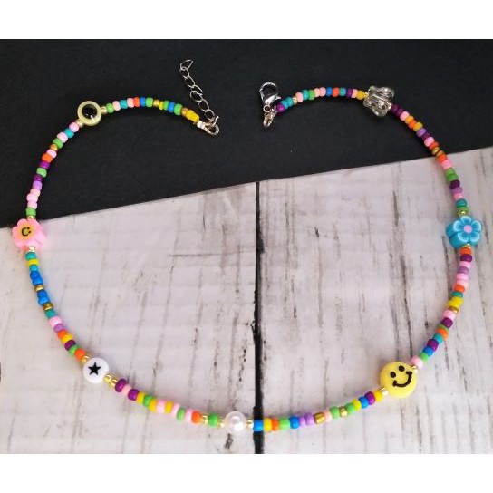 Handmade Trendy Beaded Choker, Rainbow Bead Choker, Seed Bead Choker, Smiley face choker; trendy choker